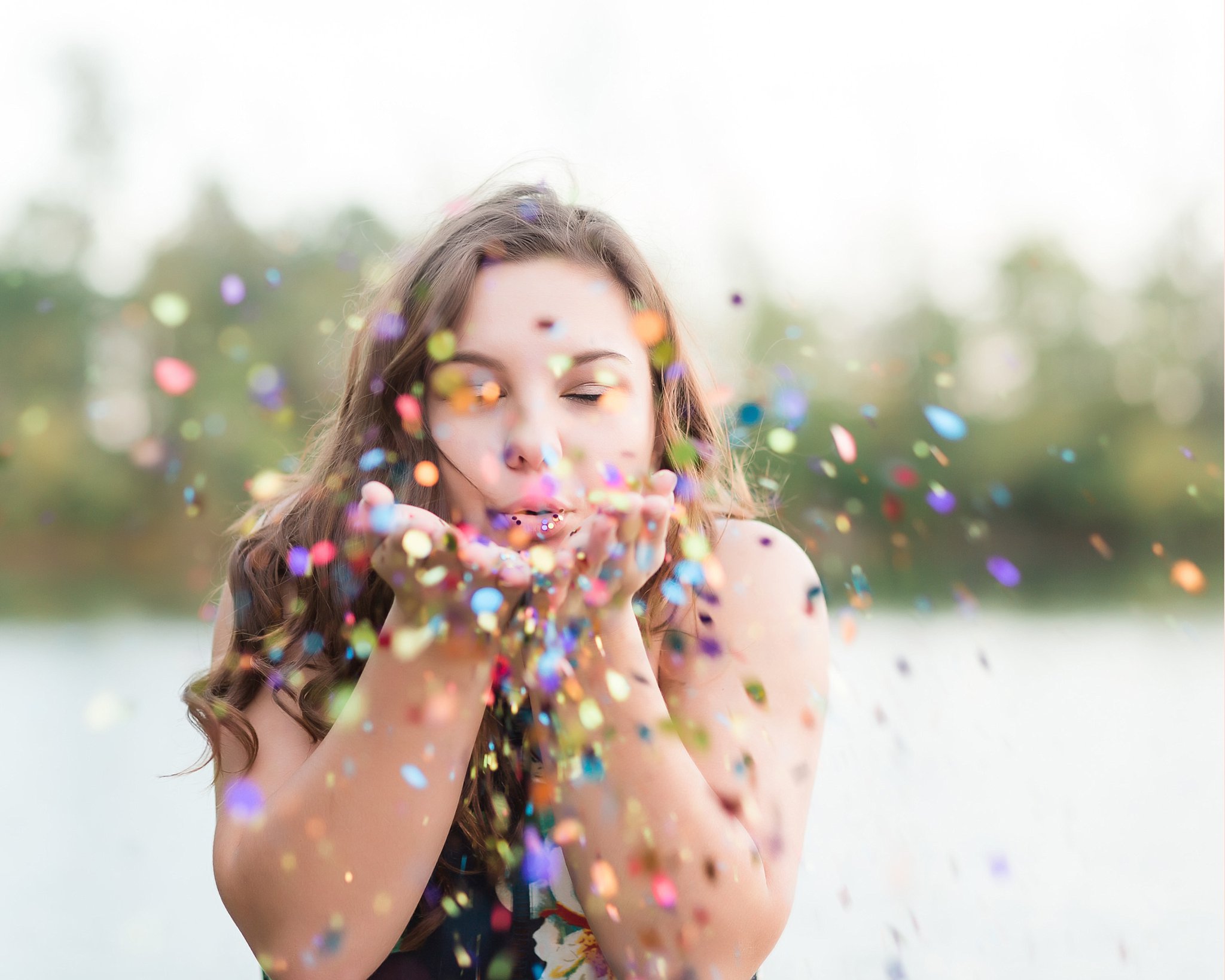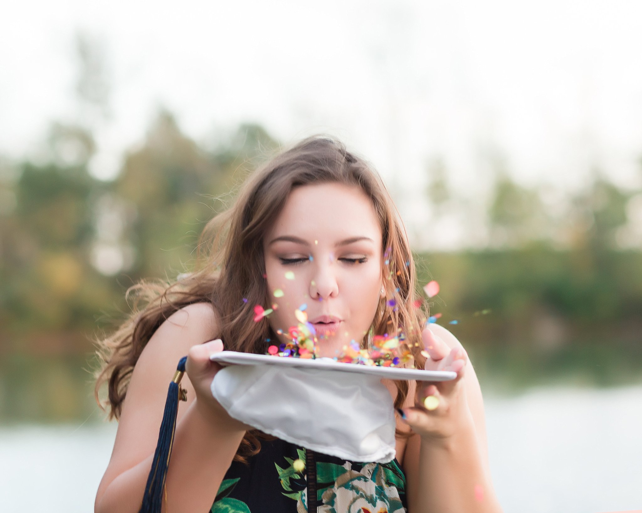Confetti shots are always fun! Shots including confetti are available for mini sessions or longer cap and gown sessions.