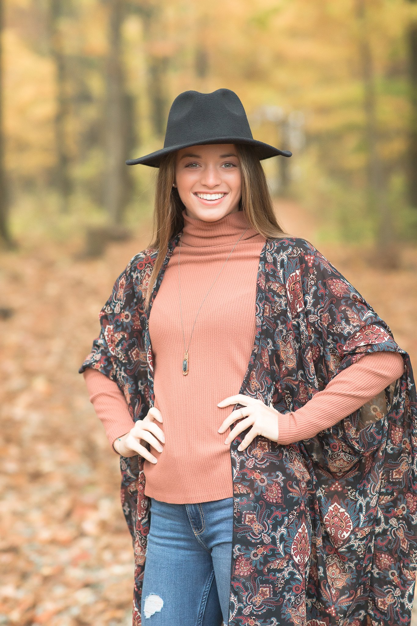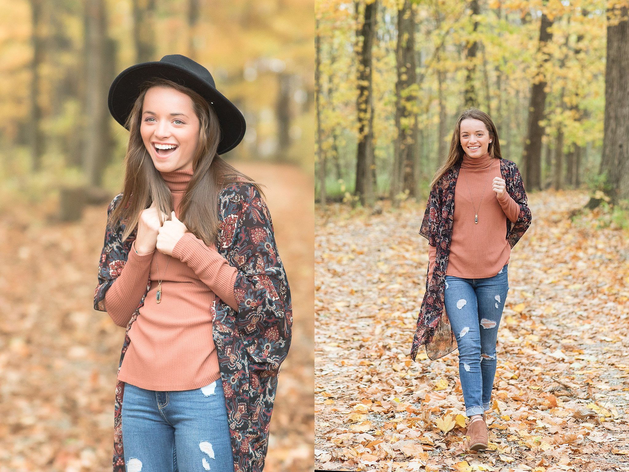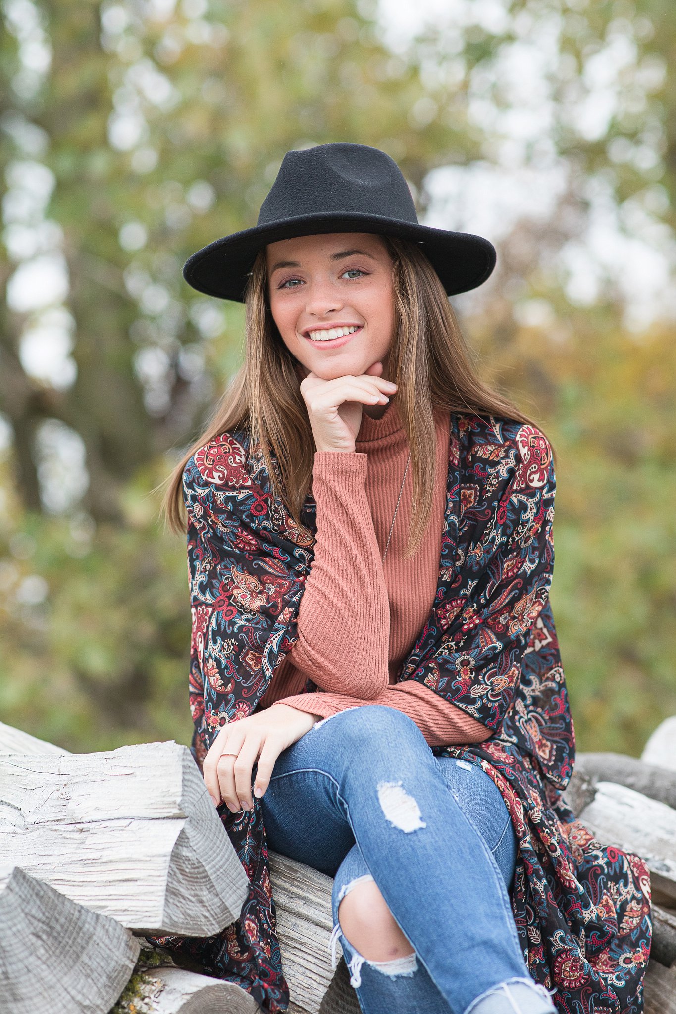 Sarah was amazing during her autumn senior session! We have had some beautiful warm days this fall! The day of her session, was NOT one of them. It was such a cold day for her session, but she was fabulous! She stayed wrapped up between sets and from her pictures you would never know if she was cold!