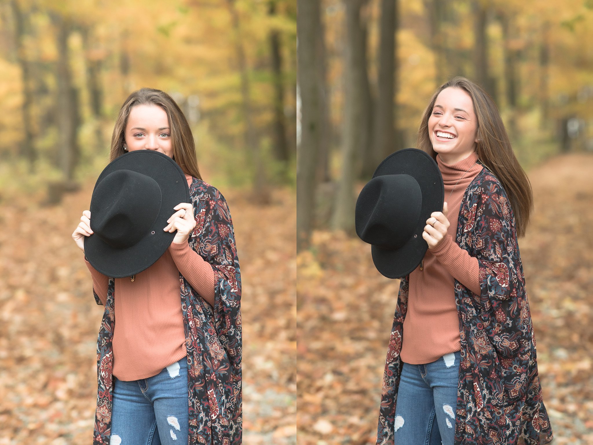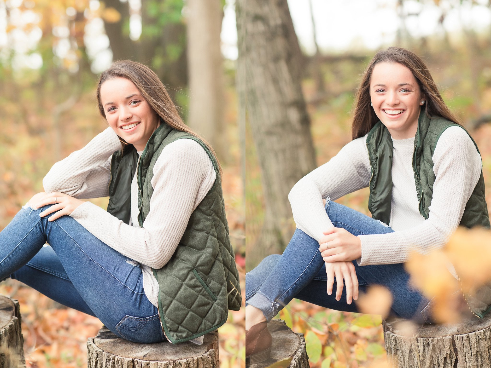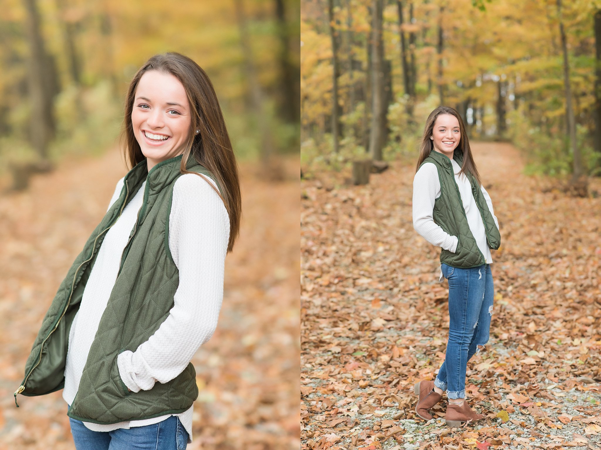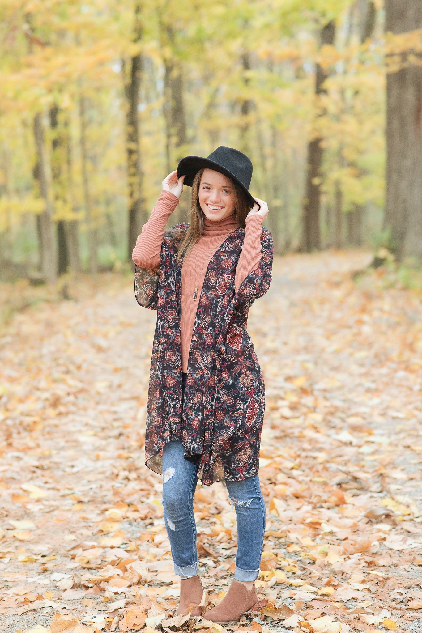 Sarah was amazing during her autumn senior session! We have had some beautiful warm days this fall! The day of her session, was NOT one of them. It was such a cold day for her session, but she was fabulous! She stayed wrapped up between sets and from her pictures you would never know if she was cold!