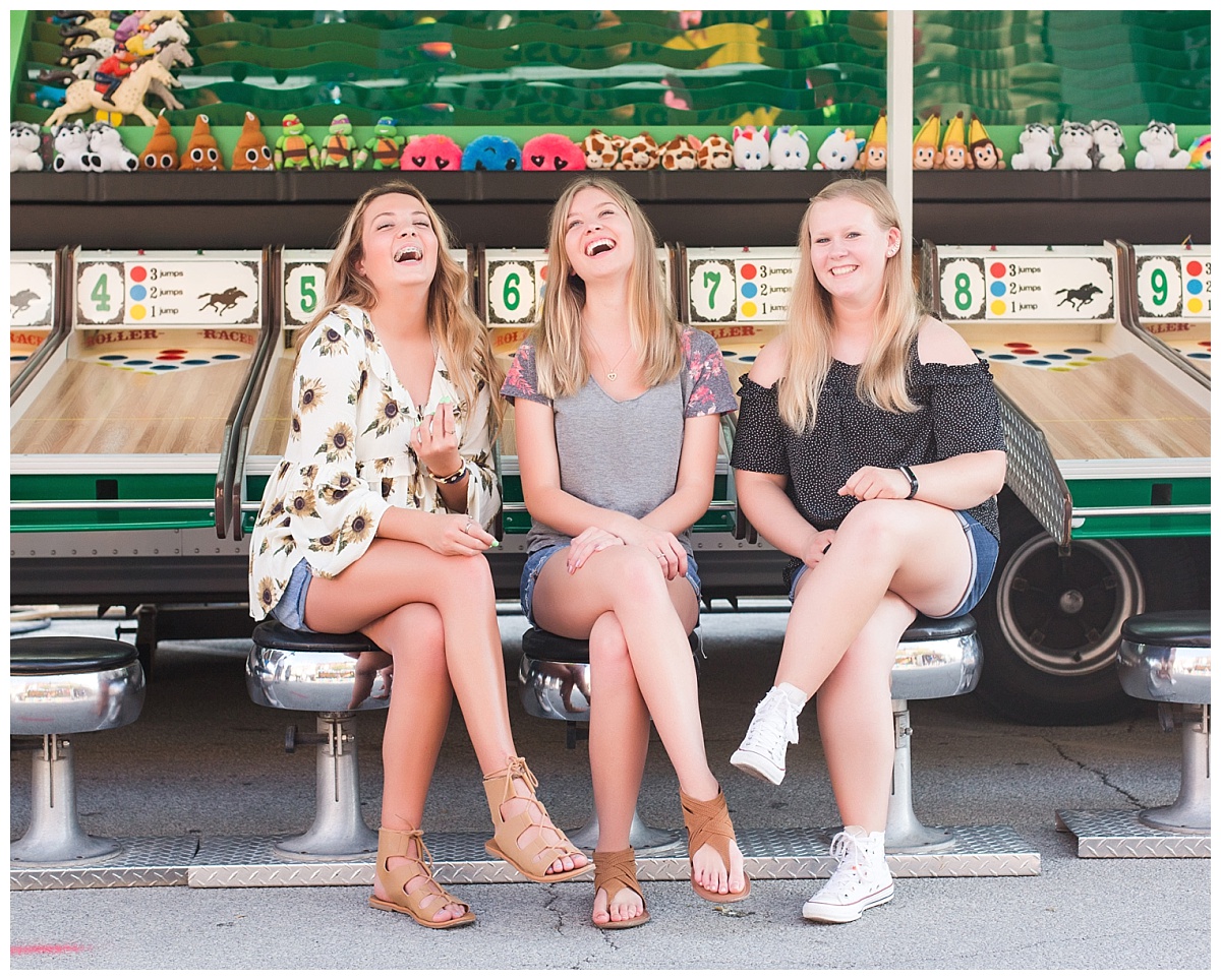 Now that you know a little about the  Bluffton Free Street Fair….  one of my very first senior reps tossed around the idea of doing her senior pictures at the fair.  She didn’t’ end up doing this, but I was hooked on the idea, so this year I invited the whole Senior Rep team to be part of a Bluffton Free Street Fair photo shoot.  It was the first time some of the reps had met each other.  I enjoyed getting to know each of them a little better, and watching them get to know each other a bit, too.  In the couple of hours we were together, they changed from stiff and a bit awkward with each other to relaxed and having fun together.  🙂