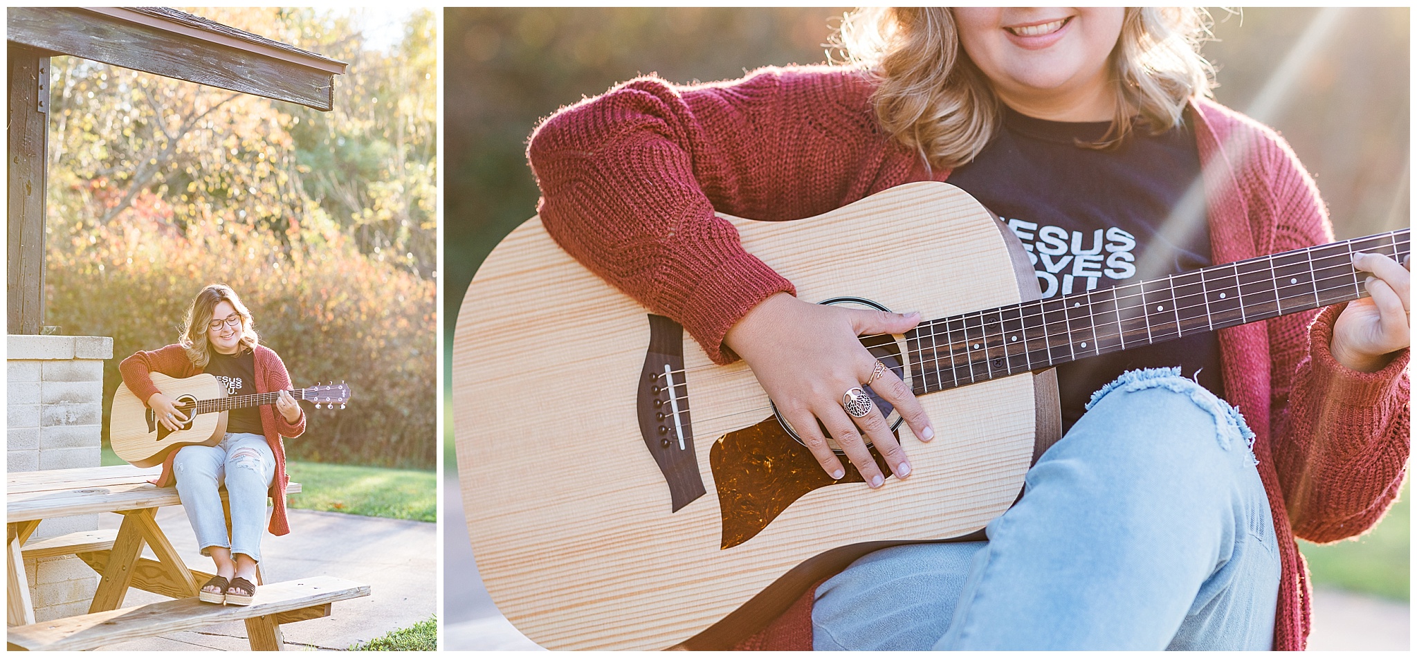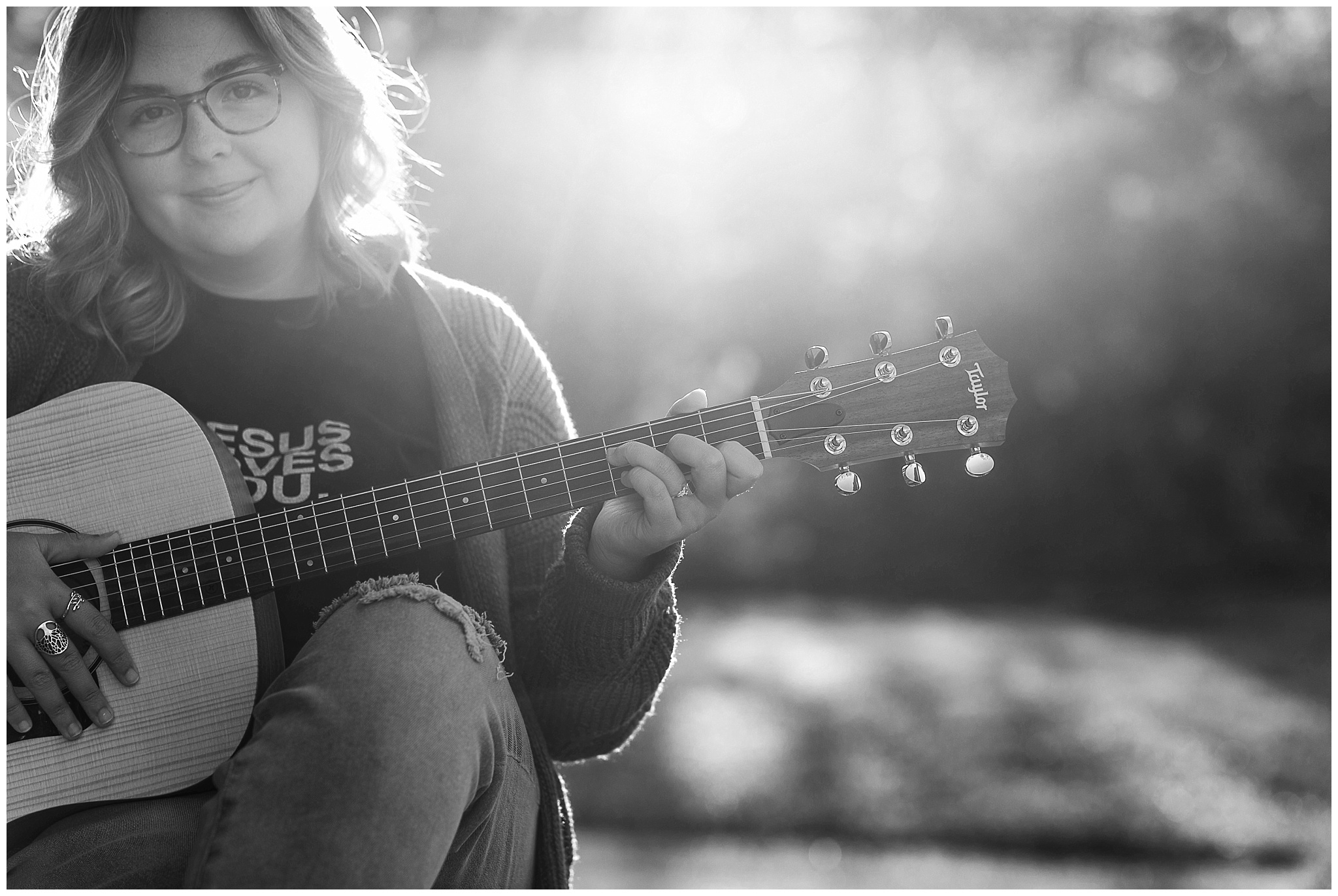 Elena has a passion for music and for Jesus. She is part of her churches worship team and wants to study to be a worship minister herself. And if you haven’t heard her sing a solo, you are missing out! She is amazing! So, it was natural to incorporate music into her senior pictures. The music toss was a fabulous idea she wanted to try. I suggested she bring more music that she thought she could possibly need, and she did. We did a couple takes and it was so much fun! Elena also plays the guitar, and strummed a bit for me as we took pictures. I love the joy on her face as she’s playing.