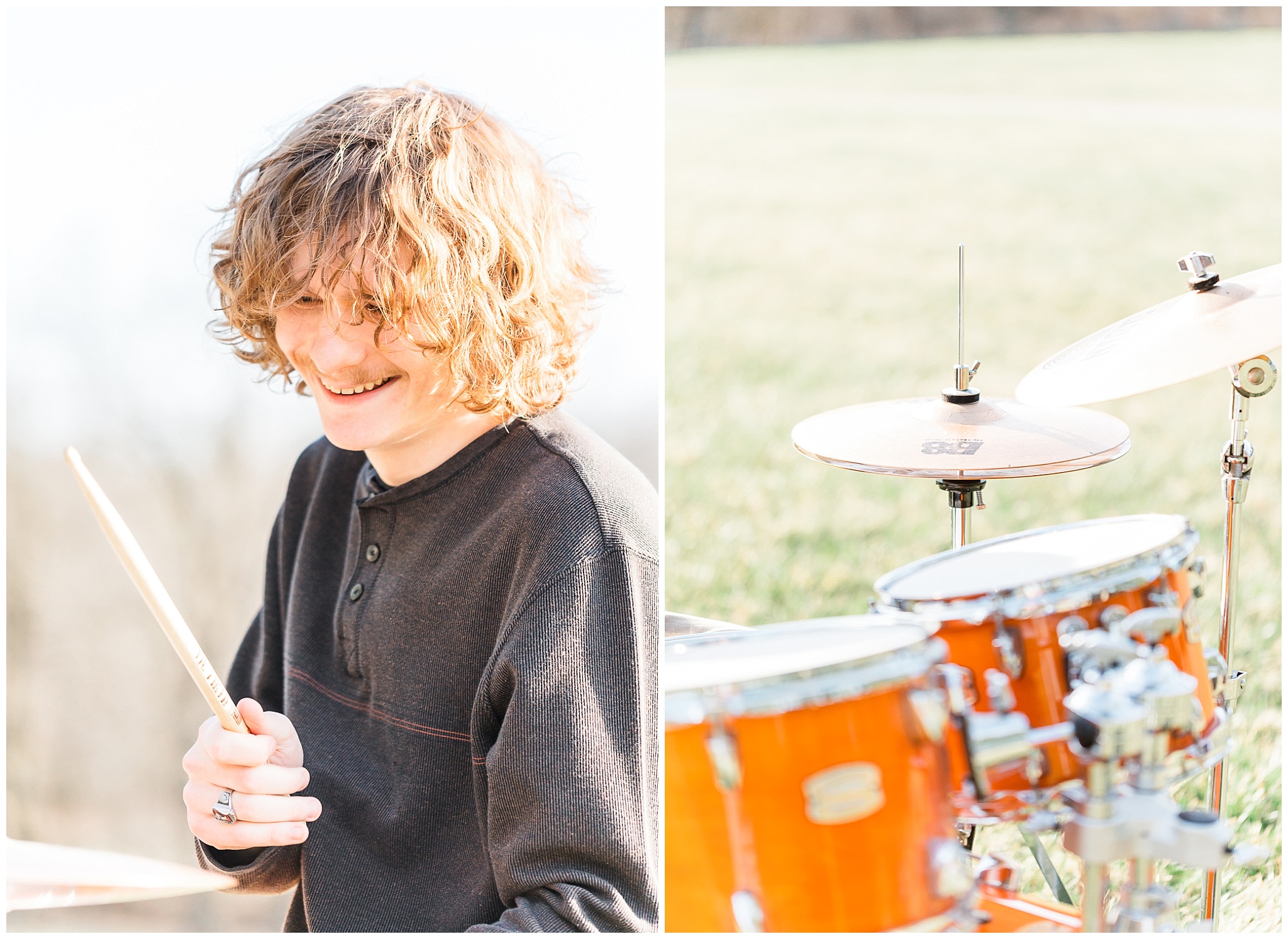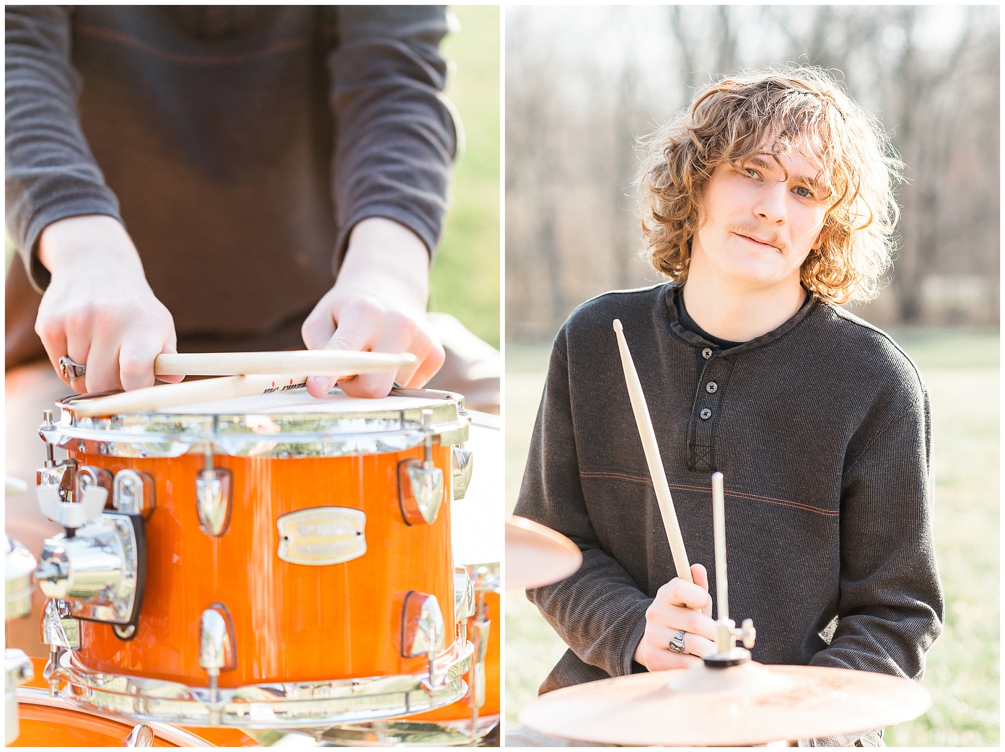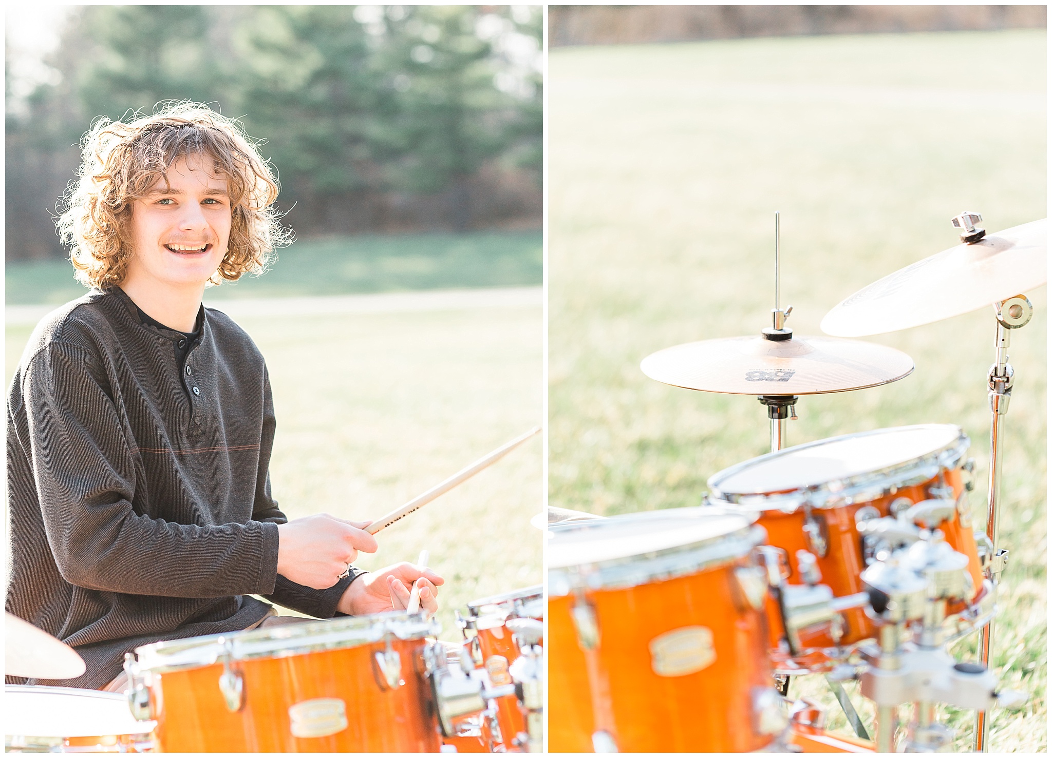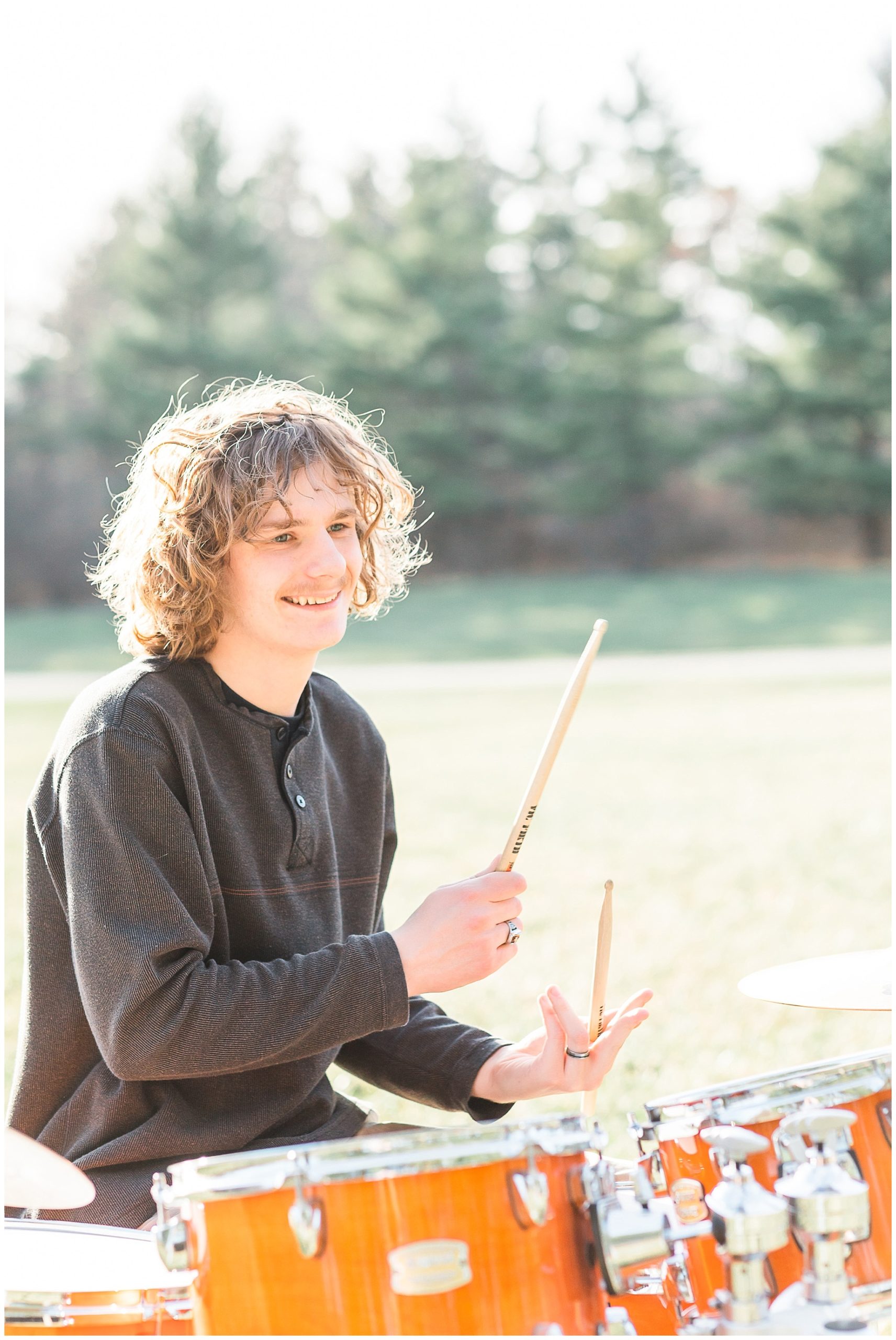 I’m so excited to share this drummer senior session with you!  Remember just last week when I was warm and sunny?  Carson was so fortunate that his senior session was scheduled for that day!  By far the nicest weather day of spring break!  Carson has been playing the drums since middle school.  So of course drums were by far the most important element for him to incorporate into his senior session.