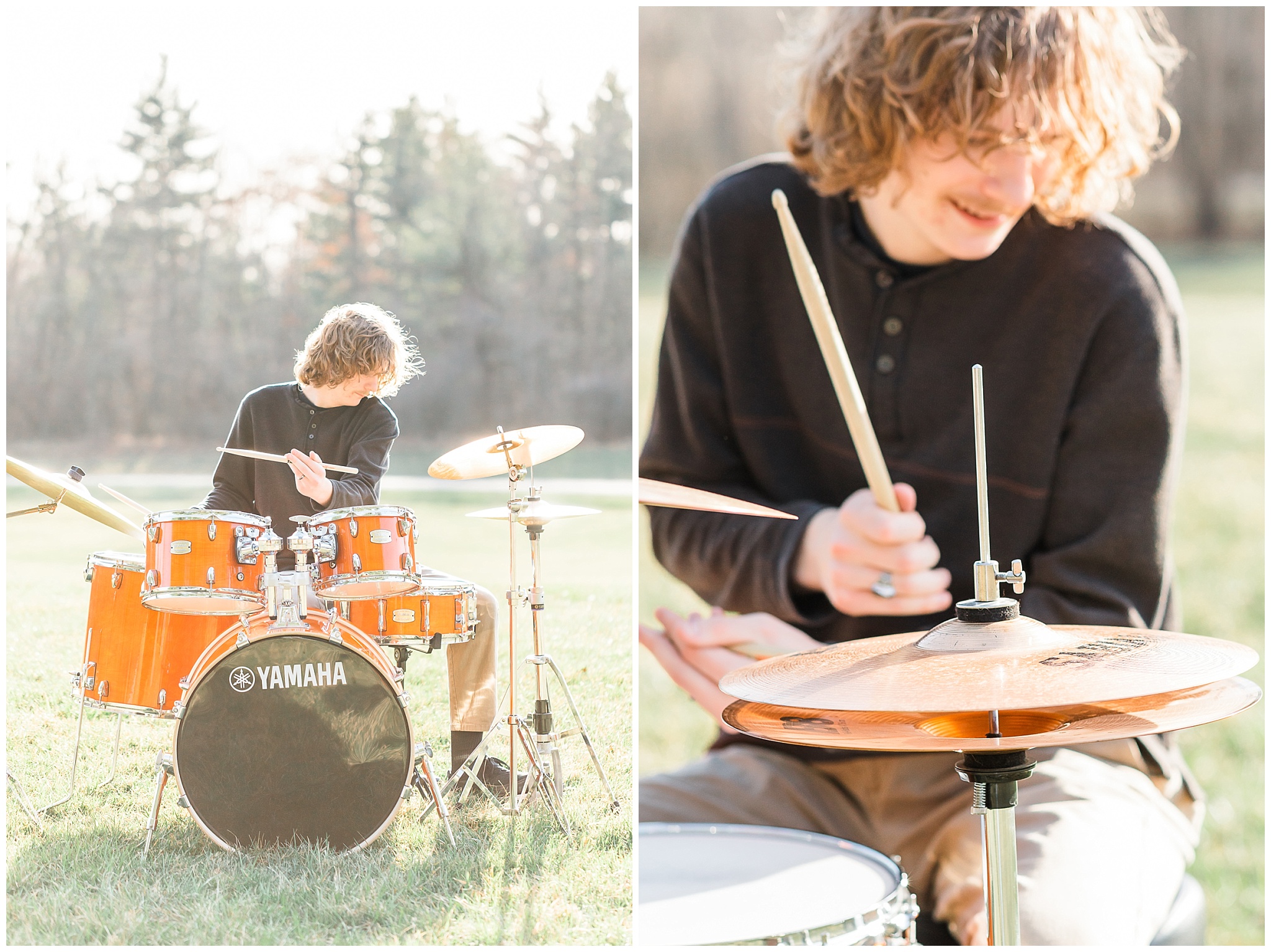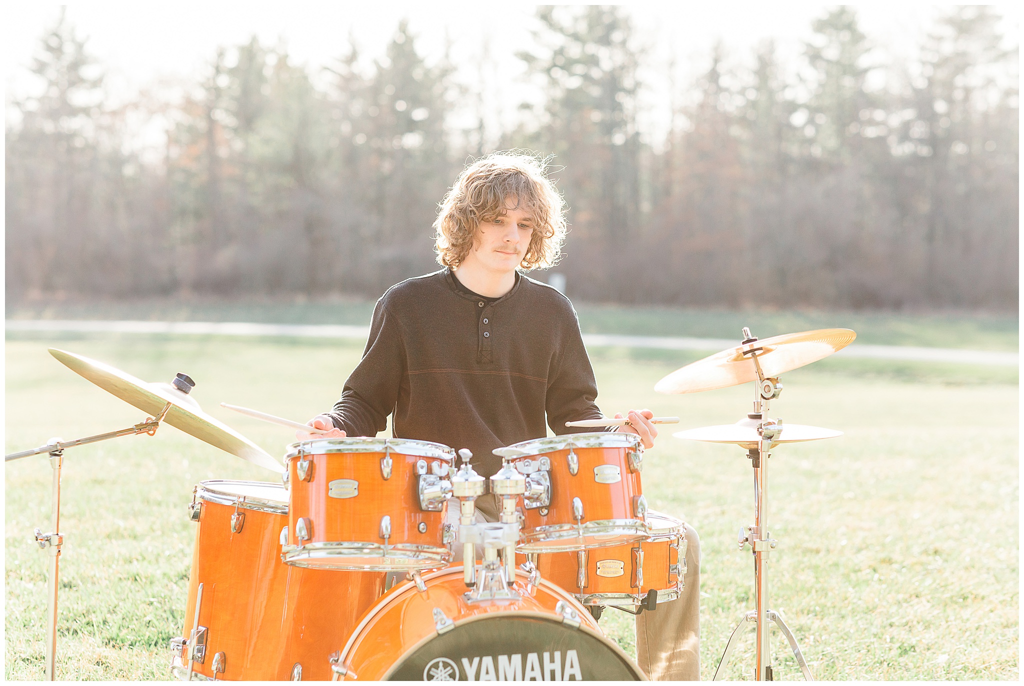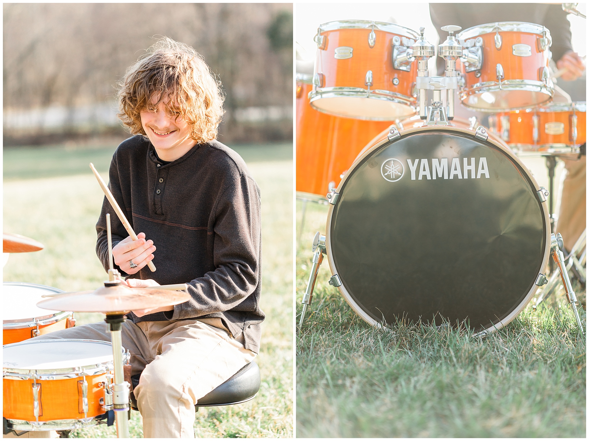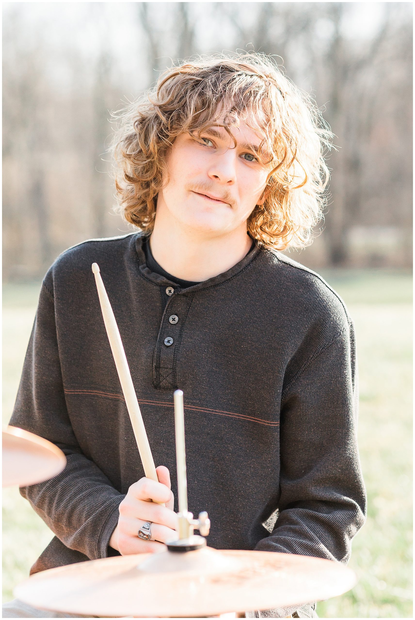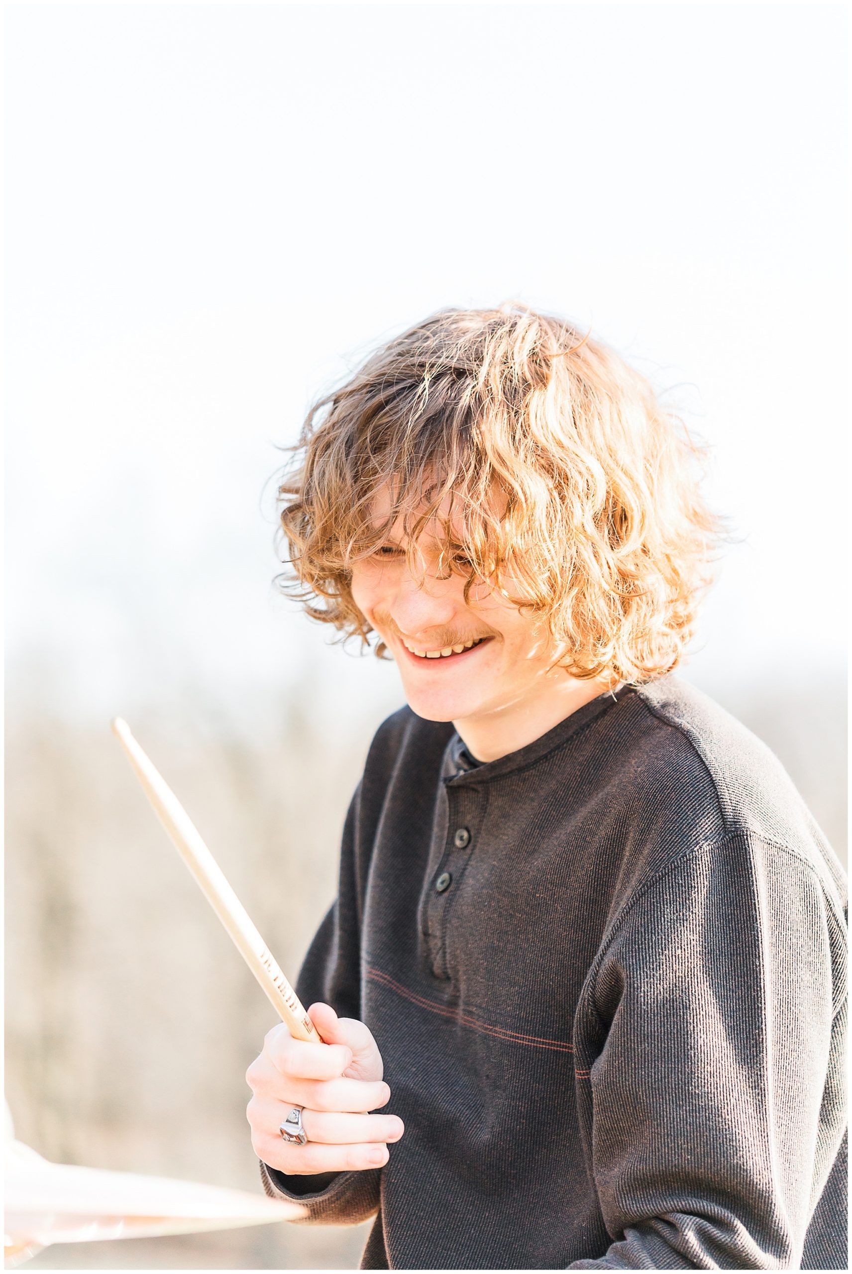 I’m so excited to share this drummer senior session with you!  Remember just last week when I was warm and sunny?  Carson was so fortunate that his senior session was scheduled for that day!  By far the nicest weather day of spring break!  Carson has been playing the drums since middle school.  So of course drums were by far the most important element for him to incorporate into his senior session.