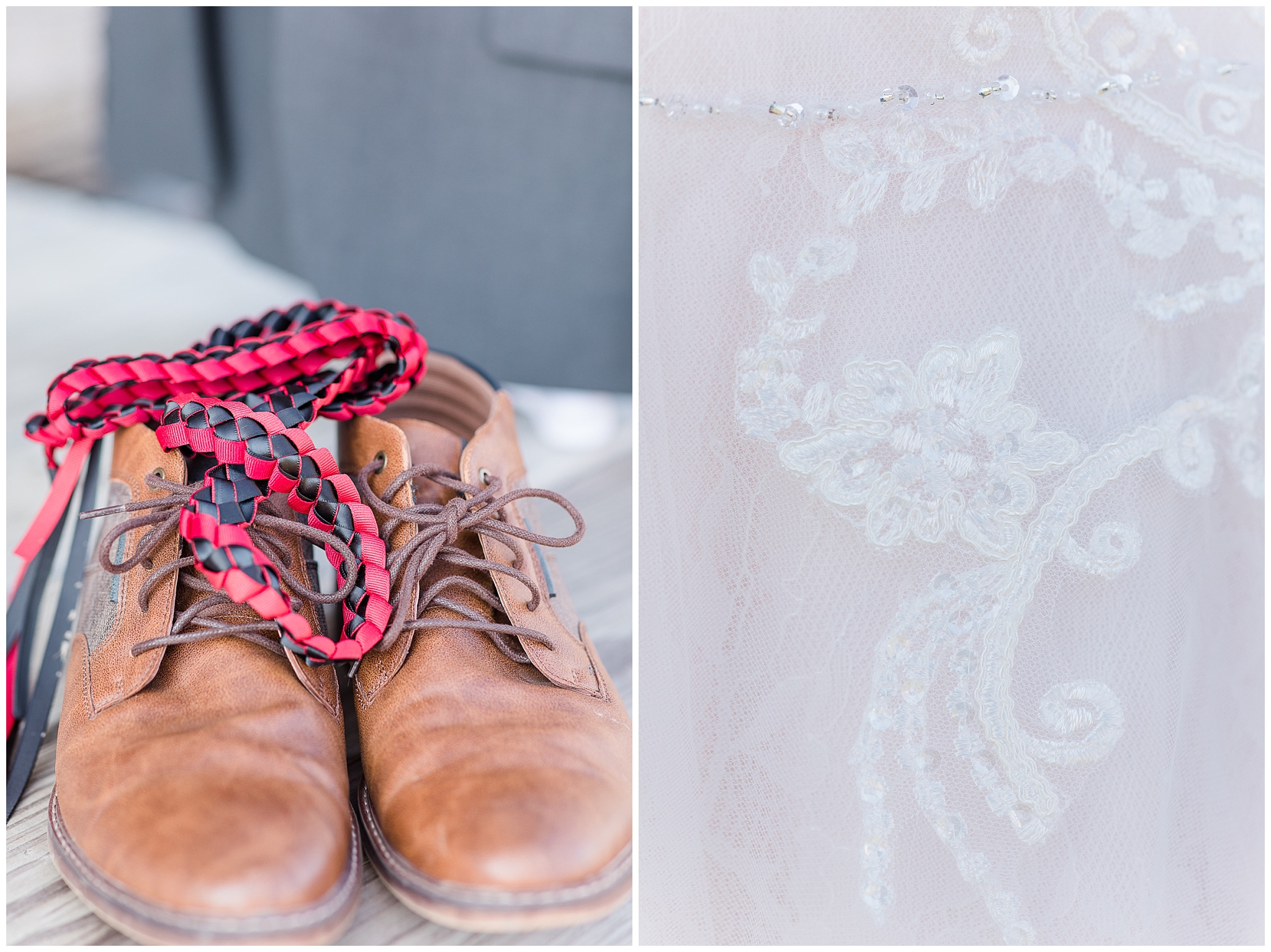 When I arrived Stephanie, had everything ready for me to get started photographing the details. When we met beforehand, she suggested photographing the dress at the cabin where they planned to have the ceremony. I marveled at how trusting they were as I loaded all, and I do mean ALL their wedding paraphernalia into my car to take to the ceremony site to photograph. Their shoes, suits, dresses, rings, flowers, even their handwritten vows that they planned to exchange with one another, all went with me. I was abundantly thankful that they trusted me so completely! Having all their special items didn’t make me feel pressured, having someone standing over my shoulder while I’m photographing the brides dress, THAT would make me feel pressured! Note to all brides, I take the special care with each wedding dress knowing just how special it is to you!