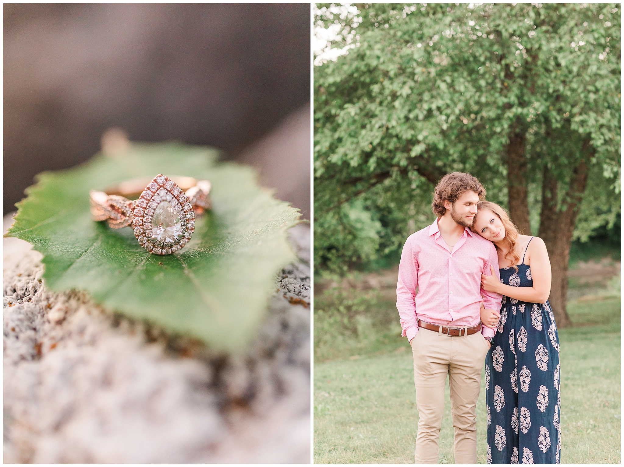 Cierra and Tyler were high school sweethearts. They have grown and deepened their relationship over the years. They broke up and were led back together through a lot of prayer! Once they reconnected, they quickly knew they were meant to stay together. They looked at engagement rings together online and planned to do more looking in person. Tyler had other plans. He took the ideas they had seen and chose a beautiful pear-shaped diamond setting with a unique rose gold band! He planned a sweet surprise proposal and both of their families were waiting to celebrate with them.