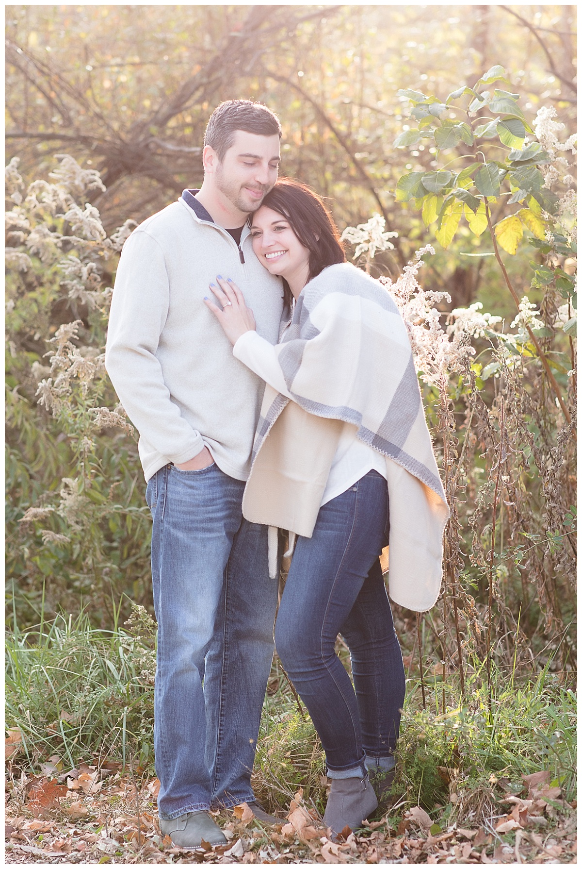– Patterns – Try to stick with solid colors or minimal patterns. Plaid shirts are fine as long as your fiancé isn’t wearing stripes or polka dots. It’s a good rule of thumb to only have one partner wearing a pattern at a time.