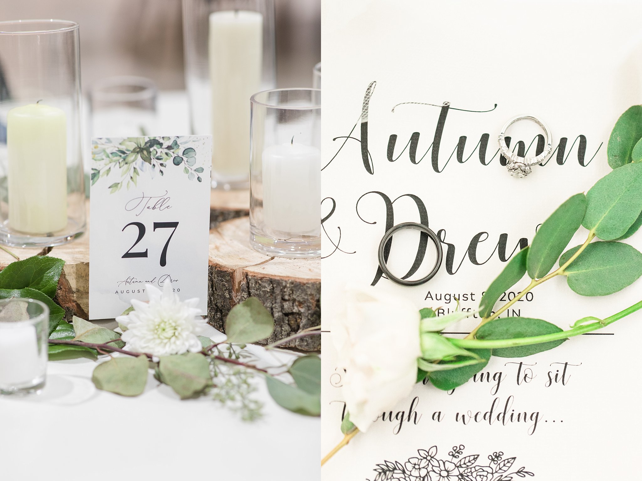 I have to be honest. I usually don’t get teary until well into the wedding day. However, at this wedding, I was nearly in tears before I even got out of the car! I was immediately drawn in by the sentimental details upon arriving at their wedding venue. Signs and memorabilia celebrating their 3,365 days of dating decorated winding path to the ceremony site. Yes! You read that right! Autumn and Drew dated for 3, 365 days, that’s 9.21 years! Pictures from middle school, through college and their May 23rd wedding adorned the long drive inviting guests to reminisce and enjoy. A beautiful tribute to their families, they displayed wedding pictures of their parents and grandparents also.