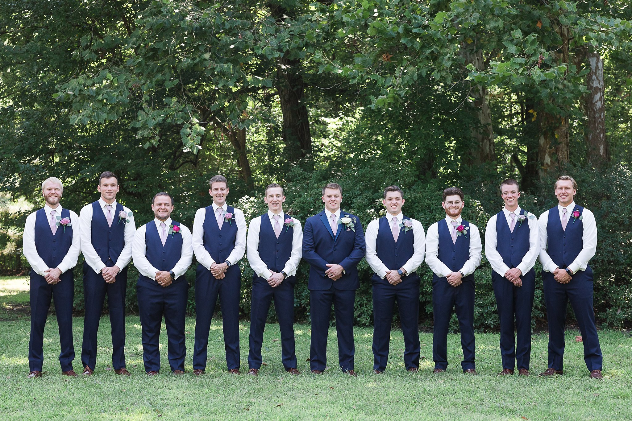 They love others and are loved by others so well, their wedding party, included nine on each side. Autumn shared that when she walked into David’s Bridal and saw the hues of rose combination, she knew that was what she wanted! She spent an entire day thinking of the coloring of each of her friends and the color they would look best in. She did an awesome job, all the girls looked beautiful! What a sweet and thoughtful bride!
