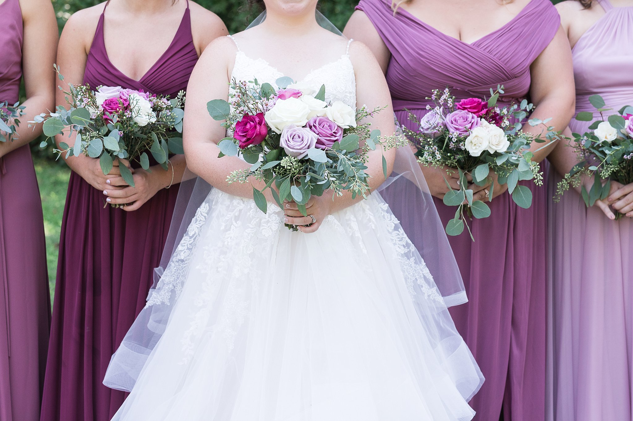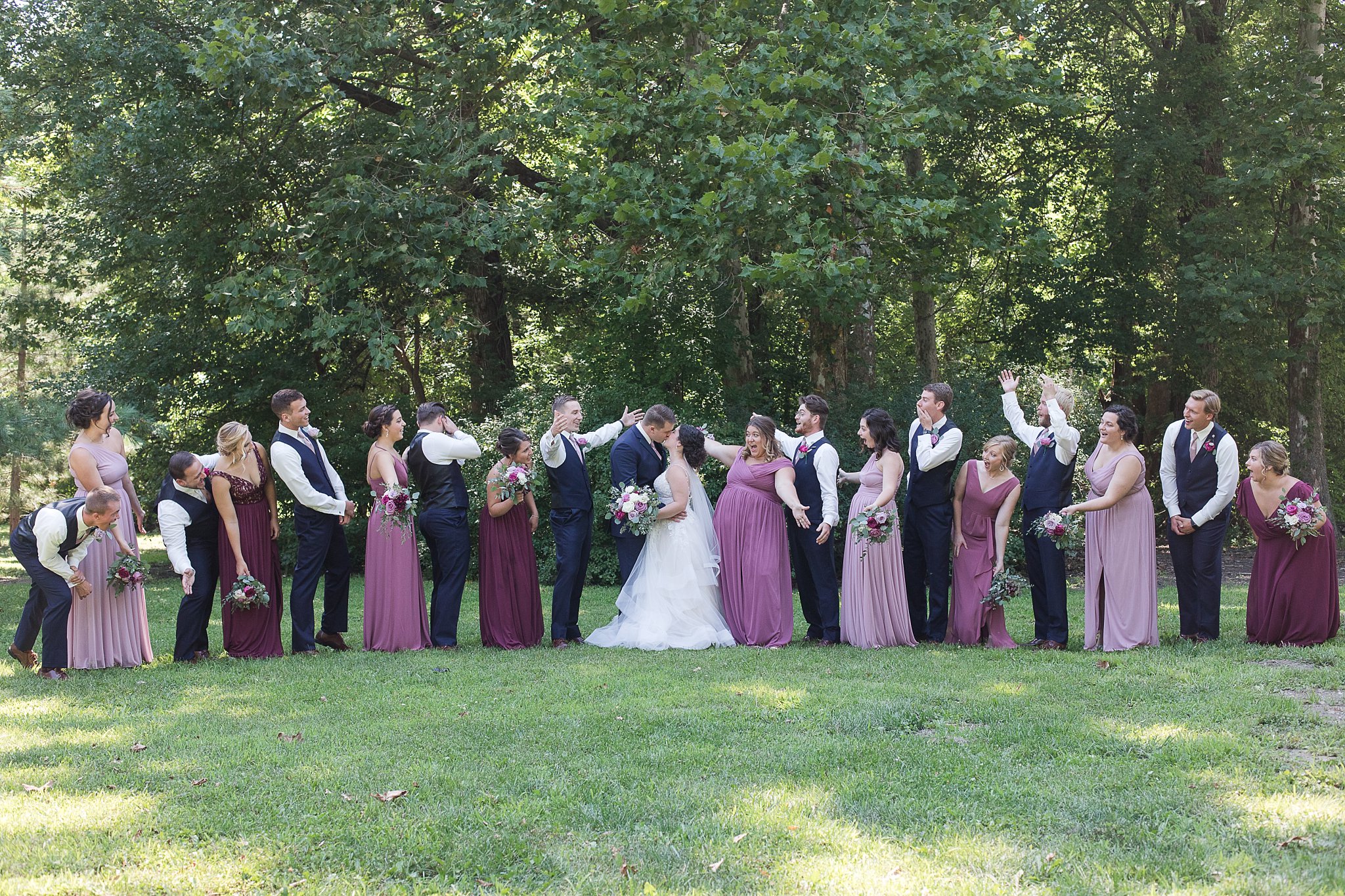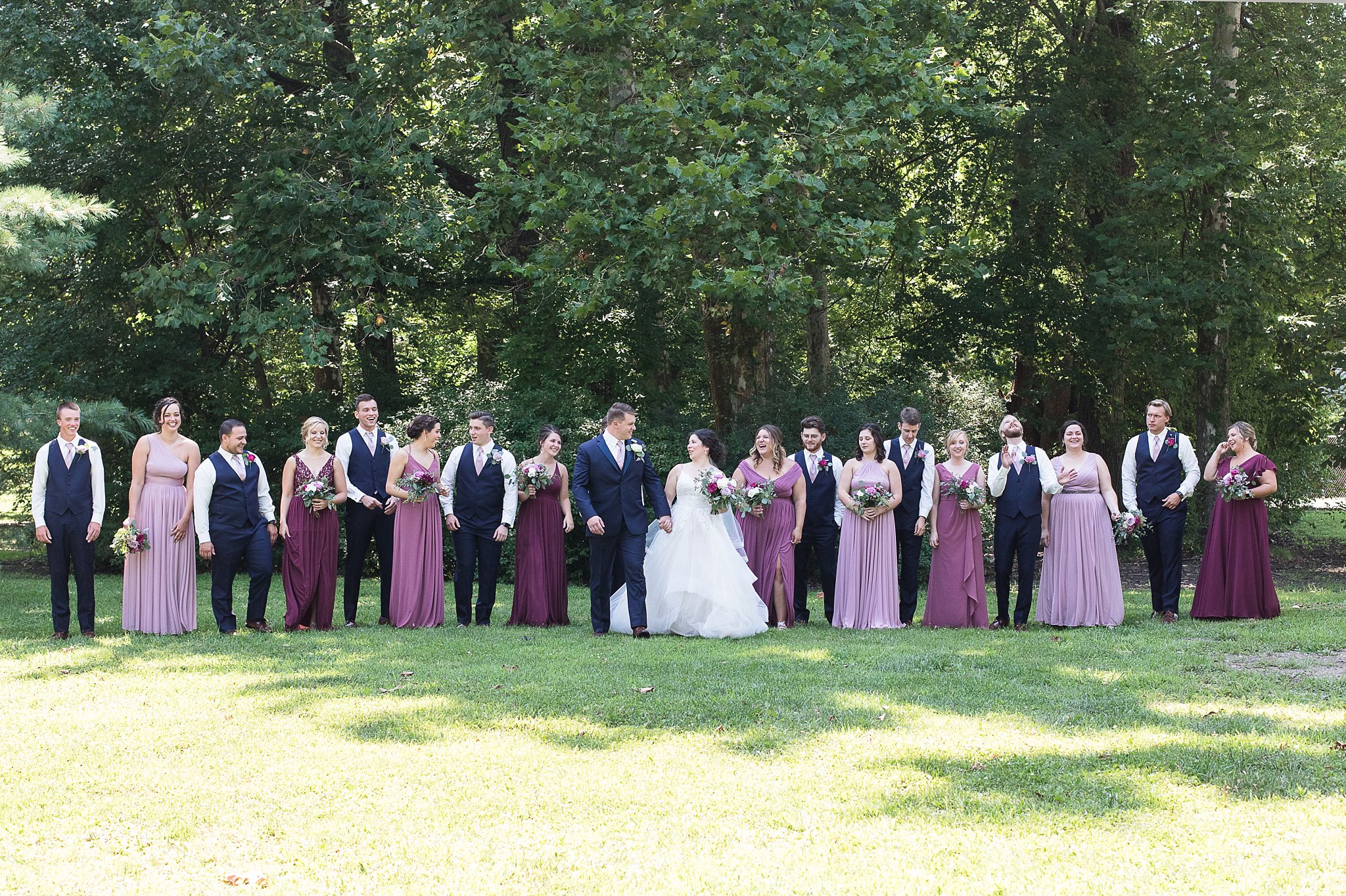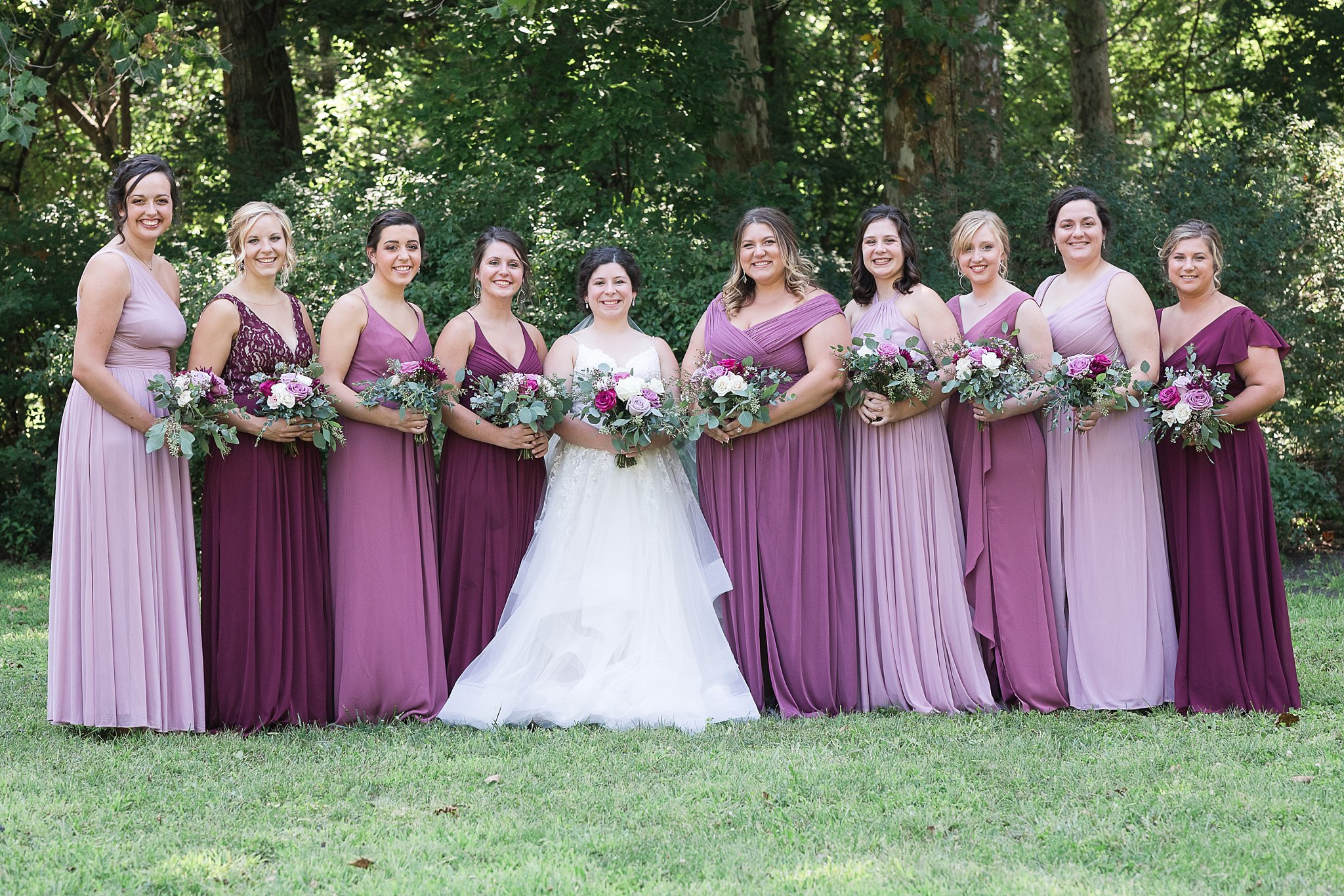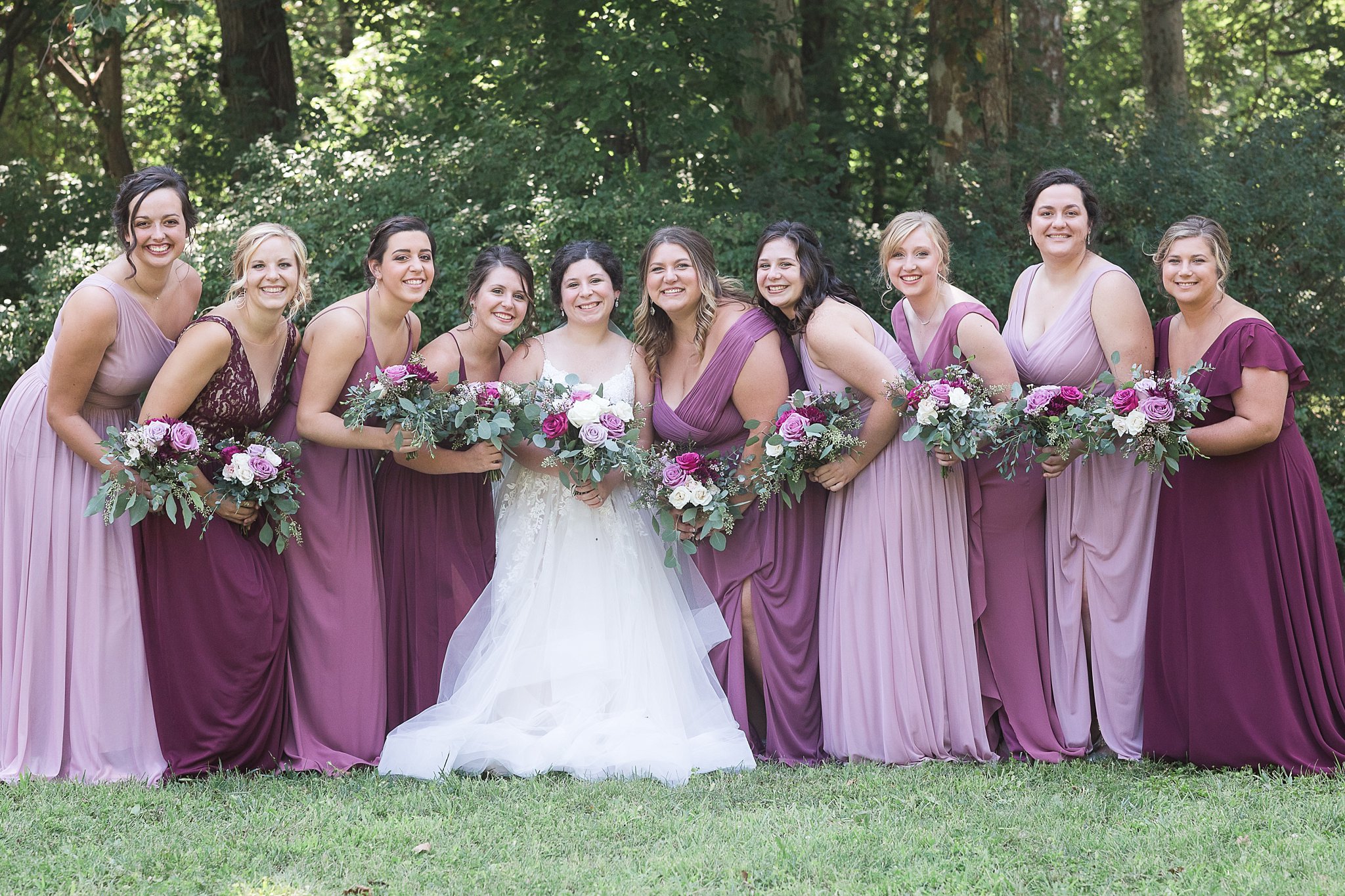 They love others and are loved by others so well, their wedding party, included nine on each side. Autumn shared that when she walked into David’s Bridal and saw the hues of rose combination, she knew that was what she wanted! She spent an entire day thinking of the coloring of each of her friends and the color they would look best in. She did an awesome job, all the girls looked beautiful! What a sweet and thoughtful bride!