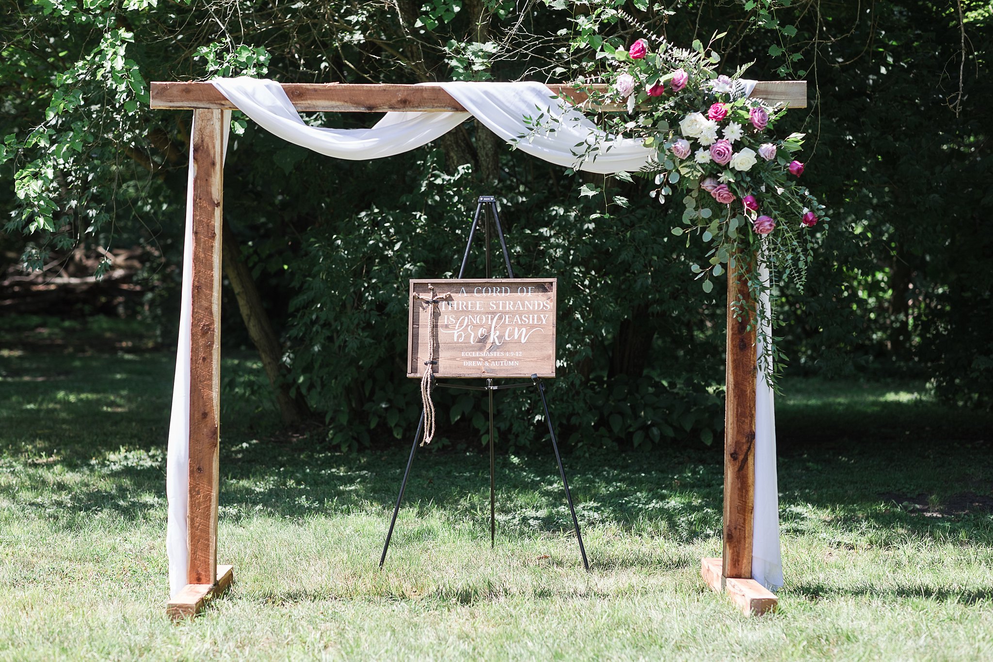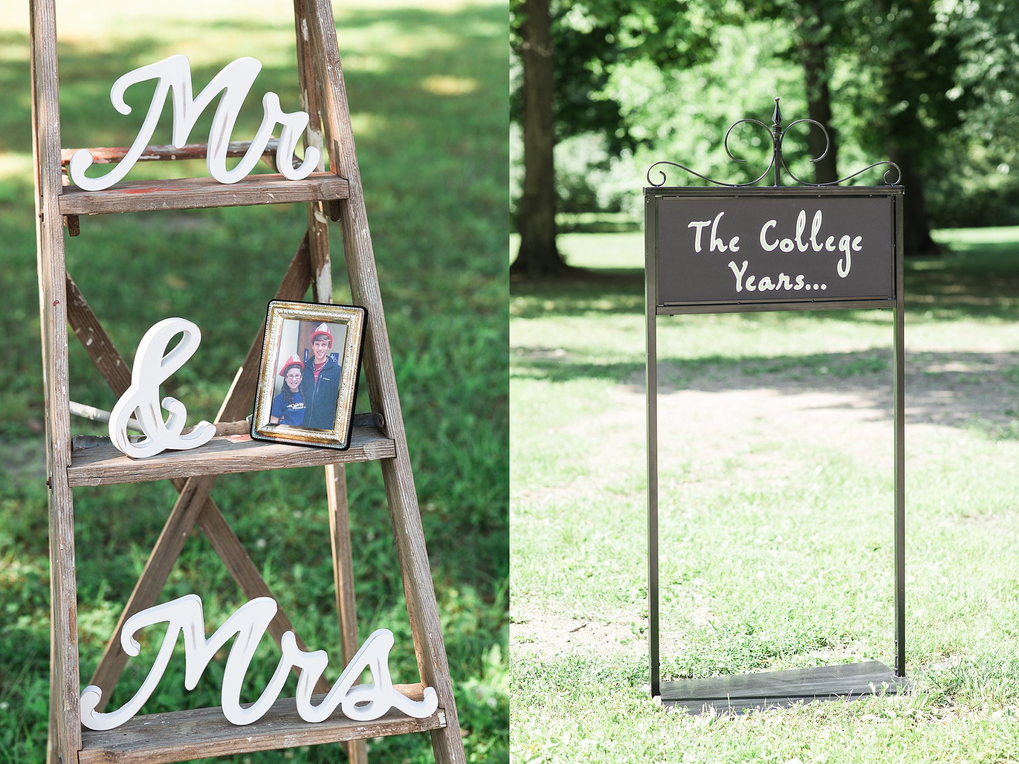 I have to be honest. I usually don’t get teary until well into the wedding day. However, at this wedding, I was nearly in tears before I even got out of the car! I was immediately drawn in by the sentimental details upon arriving at their wedding venue. Signs and memorabilia celebrating their 3,365 days of dating decorated winding path to the ceremony site. Yes! You read that right! Autumn and Drew dated for 3, 365 days, that’s 9.21 years! Pictures from middle school, through college and their May 23rd wedding adorned the long drive inviting guests to reminisce and enjoy. A beautiful tribute to their families, they displayed wedding pictures of their parents and grandparents also.