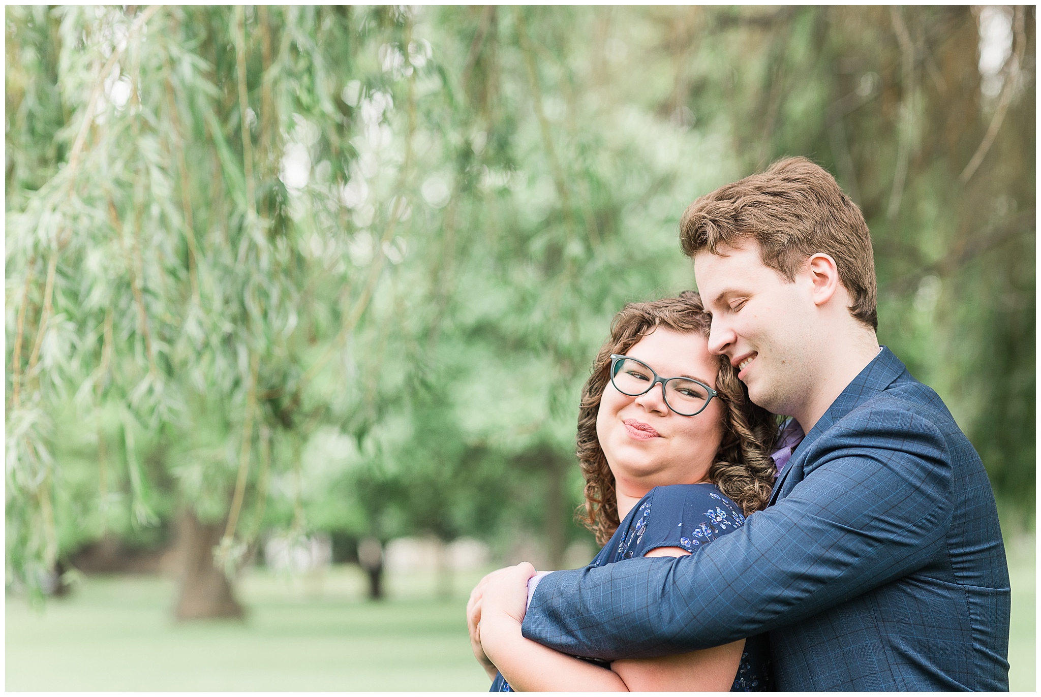 In the first few moments of their engagement session, under the willow trees at Lakeside Garden, I knew it was going to be an AMAZING session! Gail and Alex started laughing, deep rich full laughter –that makes you laugh along, as I was teaching them a few poses. Their fun and laughter continued throughout the evening. They were an absolute blast!!! It was easy to see their love for each other as we captured the many areas of the park.