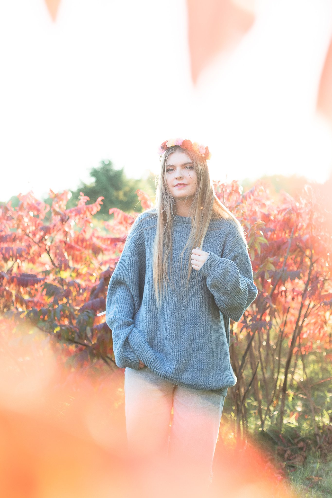 Kaela was blessed with a sun-fill senior session, a nice change from the week before. As we explored Metea Park, Kaela shared that her senior year, had ramped up and was crazy busy with projects and papers right before fall break. We loved the variety of locations offered by the park and captured images on a wooded trail, a couple fields of flowers and even found some beautiful red leafed trees!