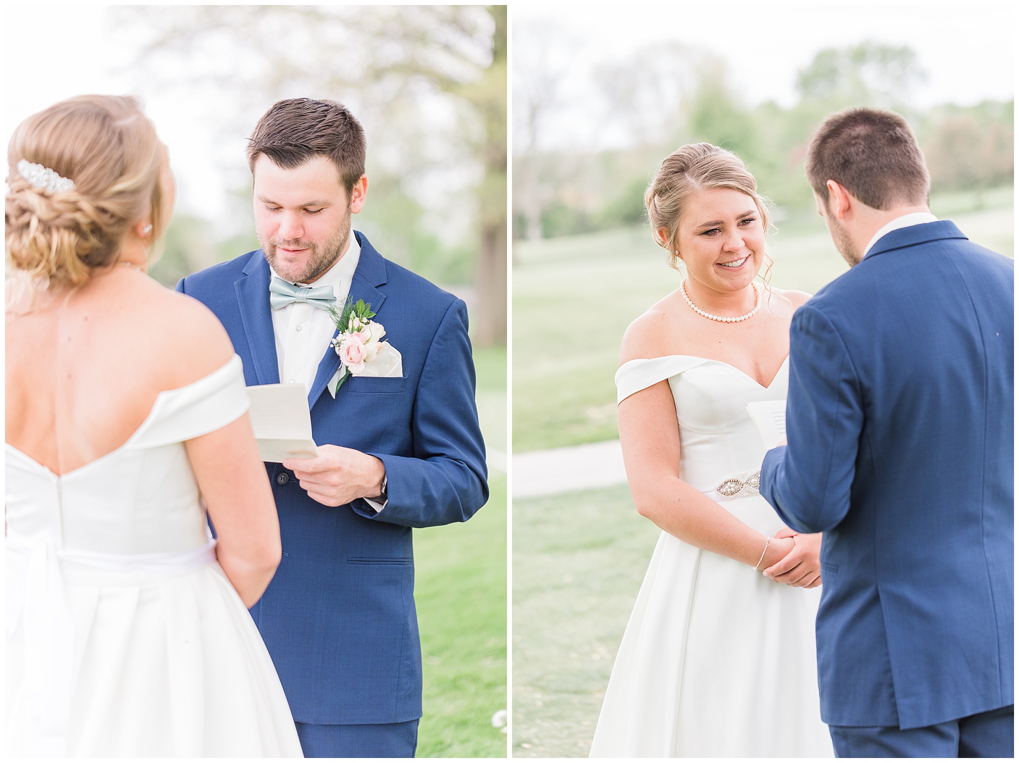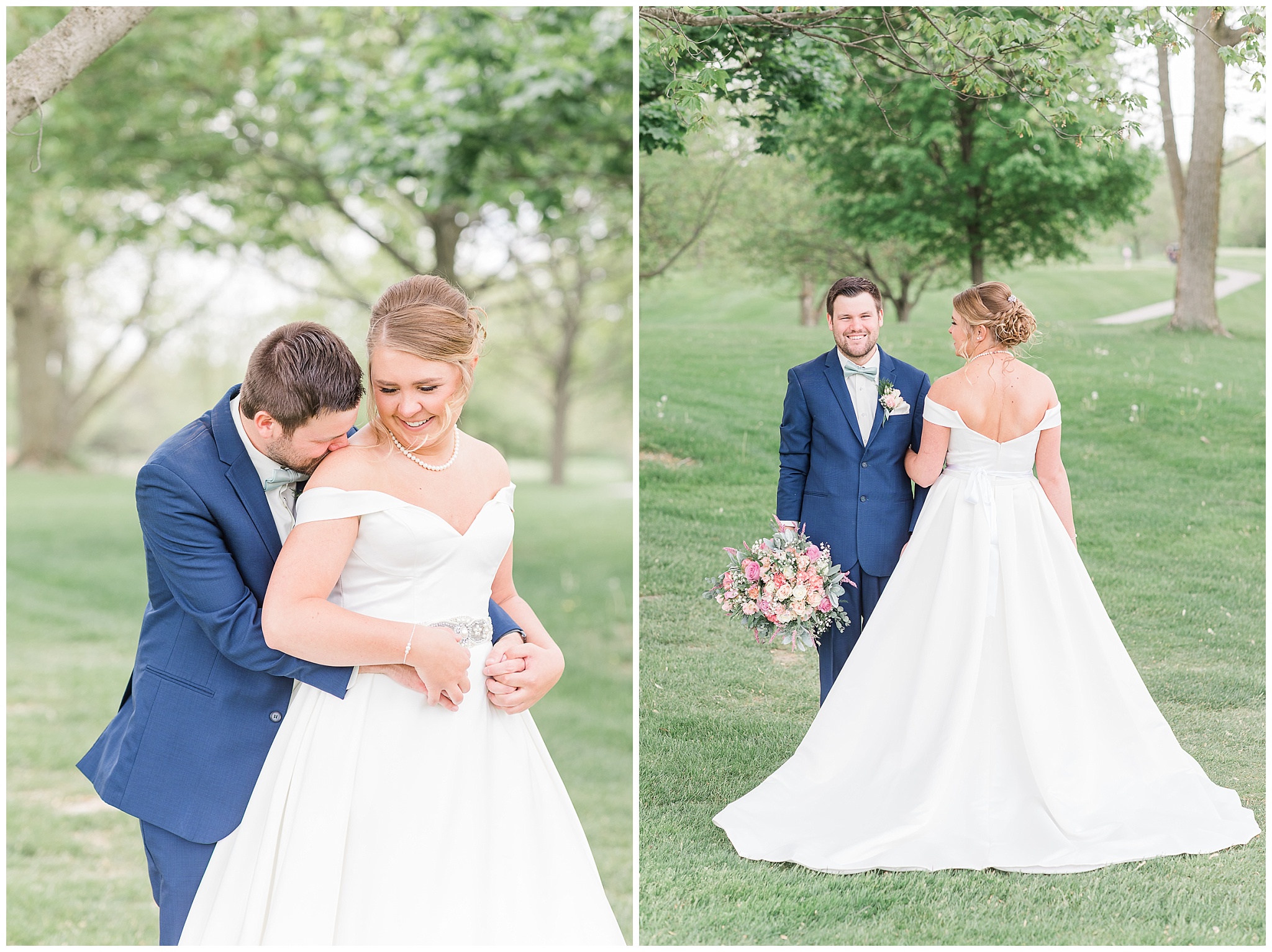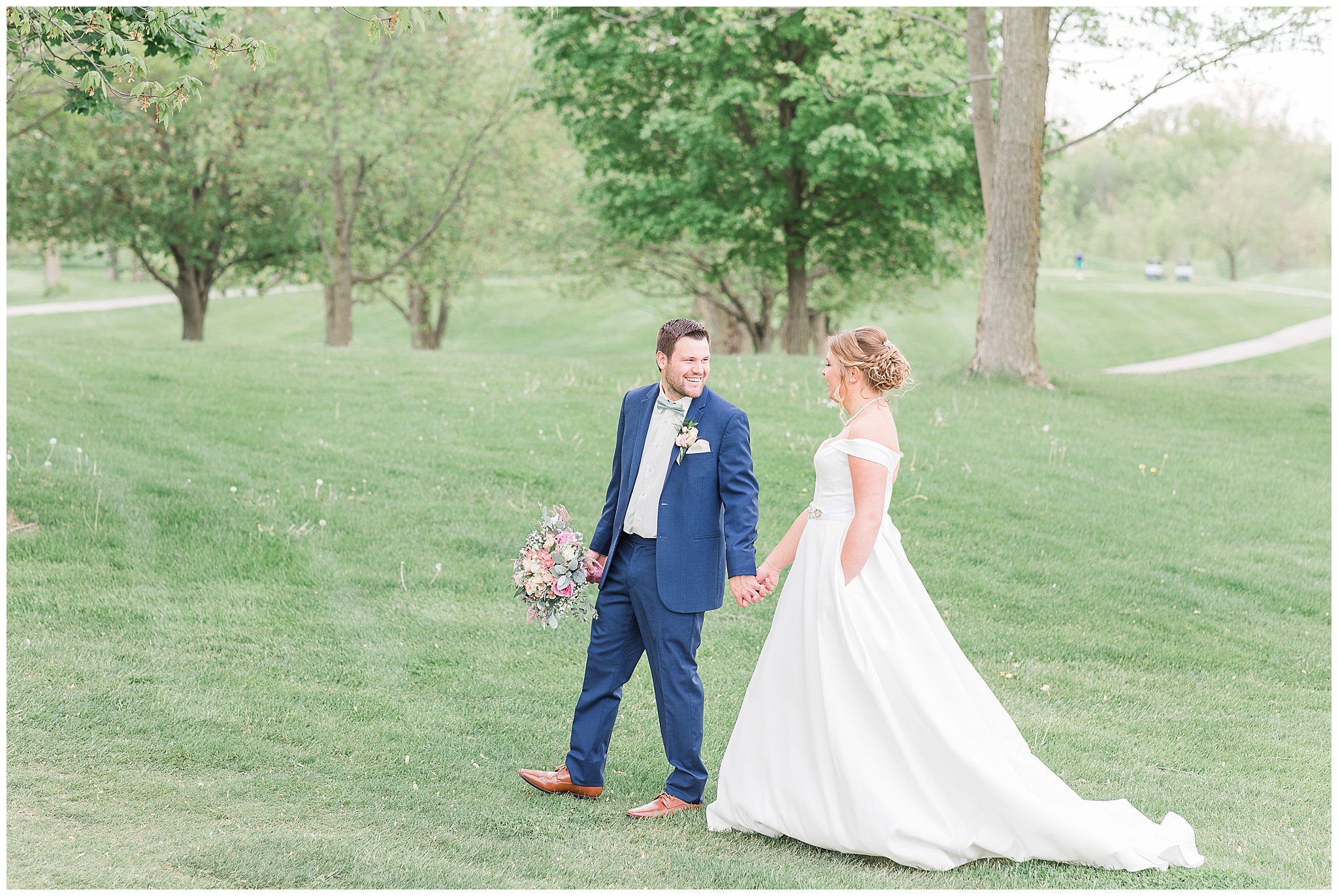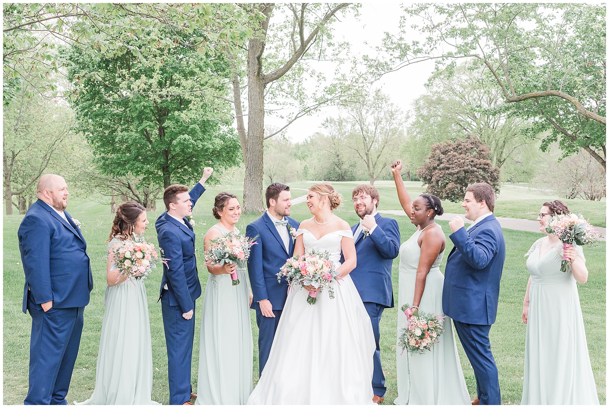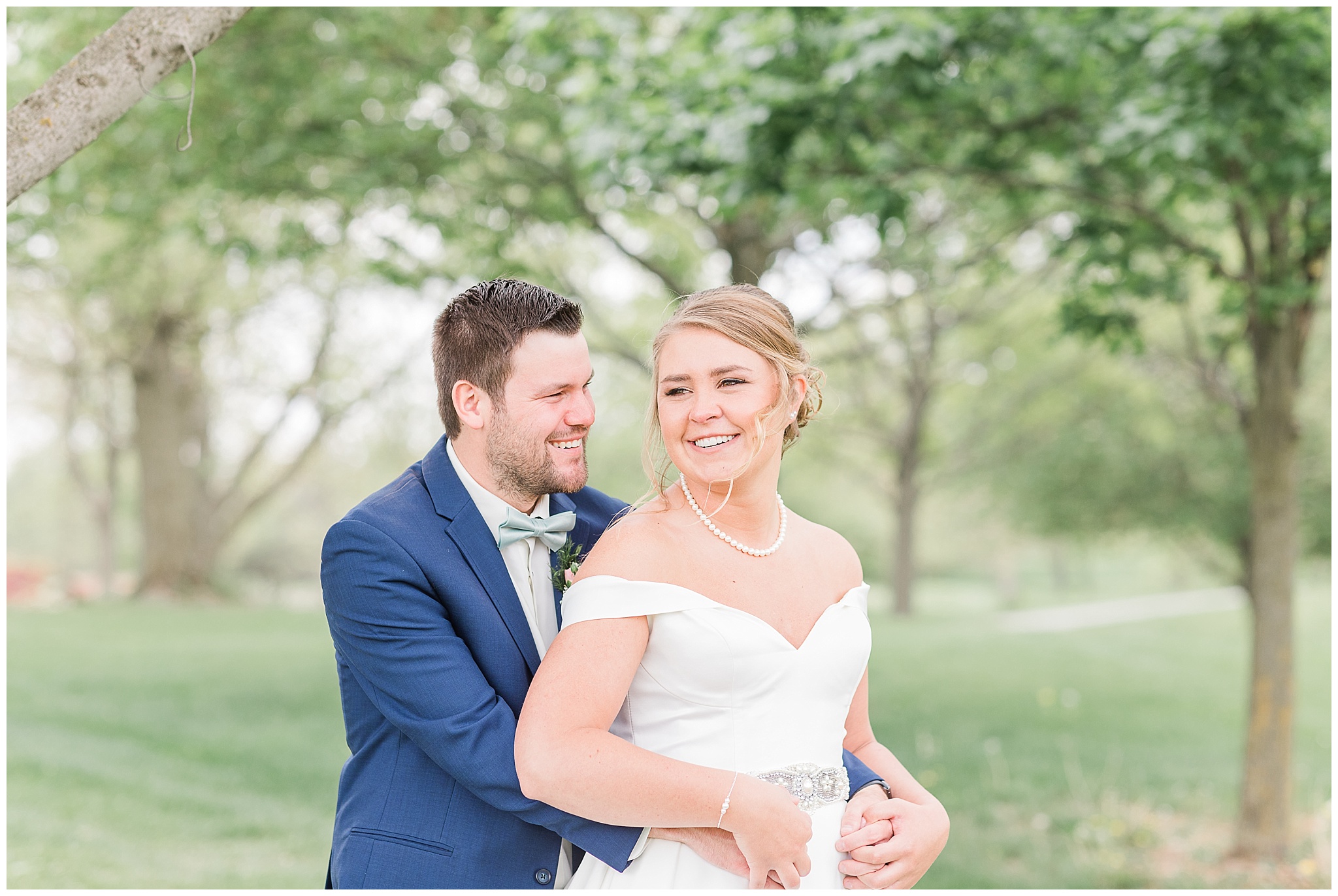 Congratulations to Alyson and Dustin! They were married in a beautiful sage green and navy wedding at Orchard Ridge Country Club. Before we even met I knew I was going to like Alyson and Dustin. In emailing about the engagement session Alyson suggested we start by sitting down and chatting! A couple who values the relationship aspect of the wedding photography process, as much as I do! YES!!! 🙂 Their fall engagement session was so much fun, and I couldn’t wait for their spring wedding!