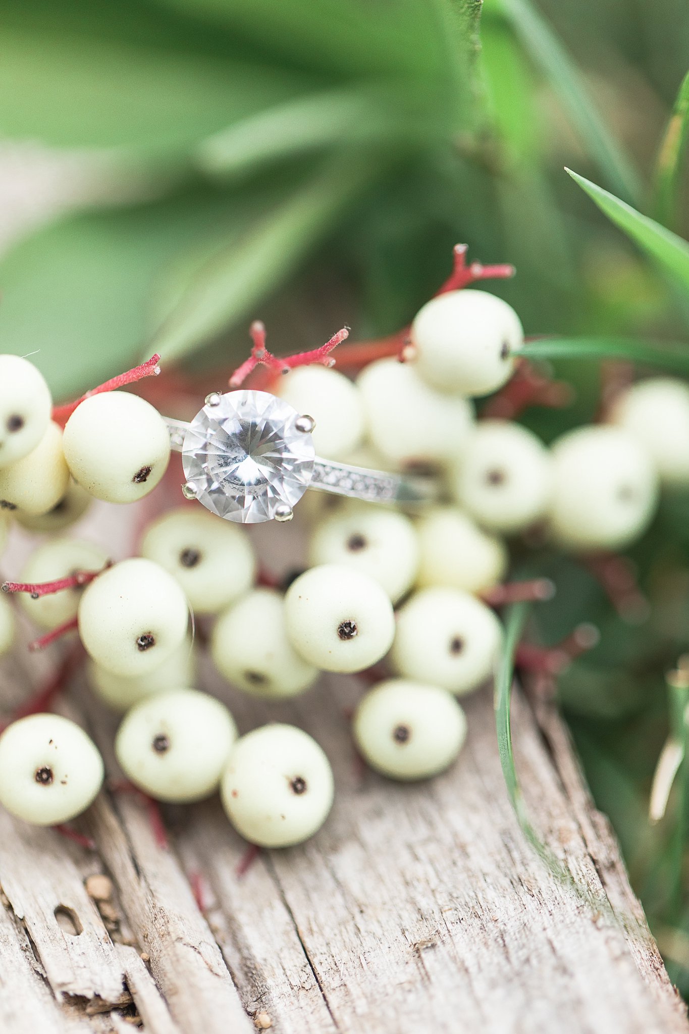 All day long Dustin had the ring in his pocket, waiting for the perfect moment to propose. After a family birthday party, they went to Alyson’s sister’s house where she was house/dog sitting. Dustin couldn’t wait any longer! As they were preparing to walk the dog, Dustin took Alyson by surprise when he dropped to one knee and asked to marry her. Such a sweet proposal!