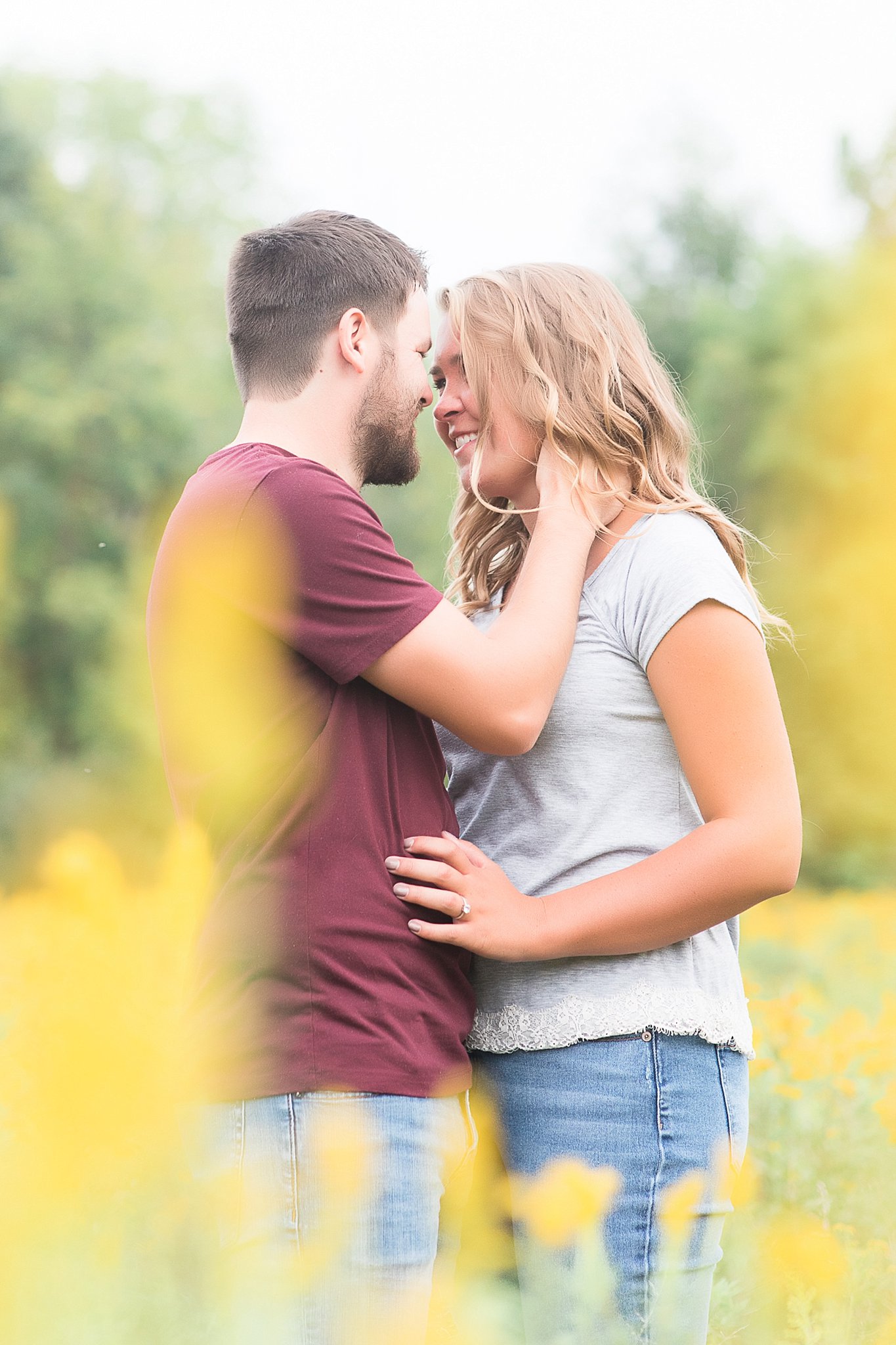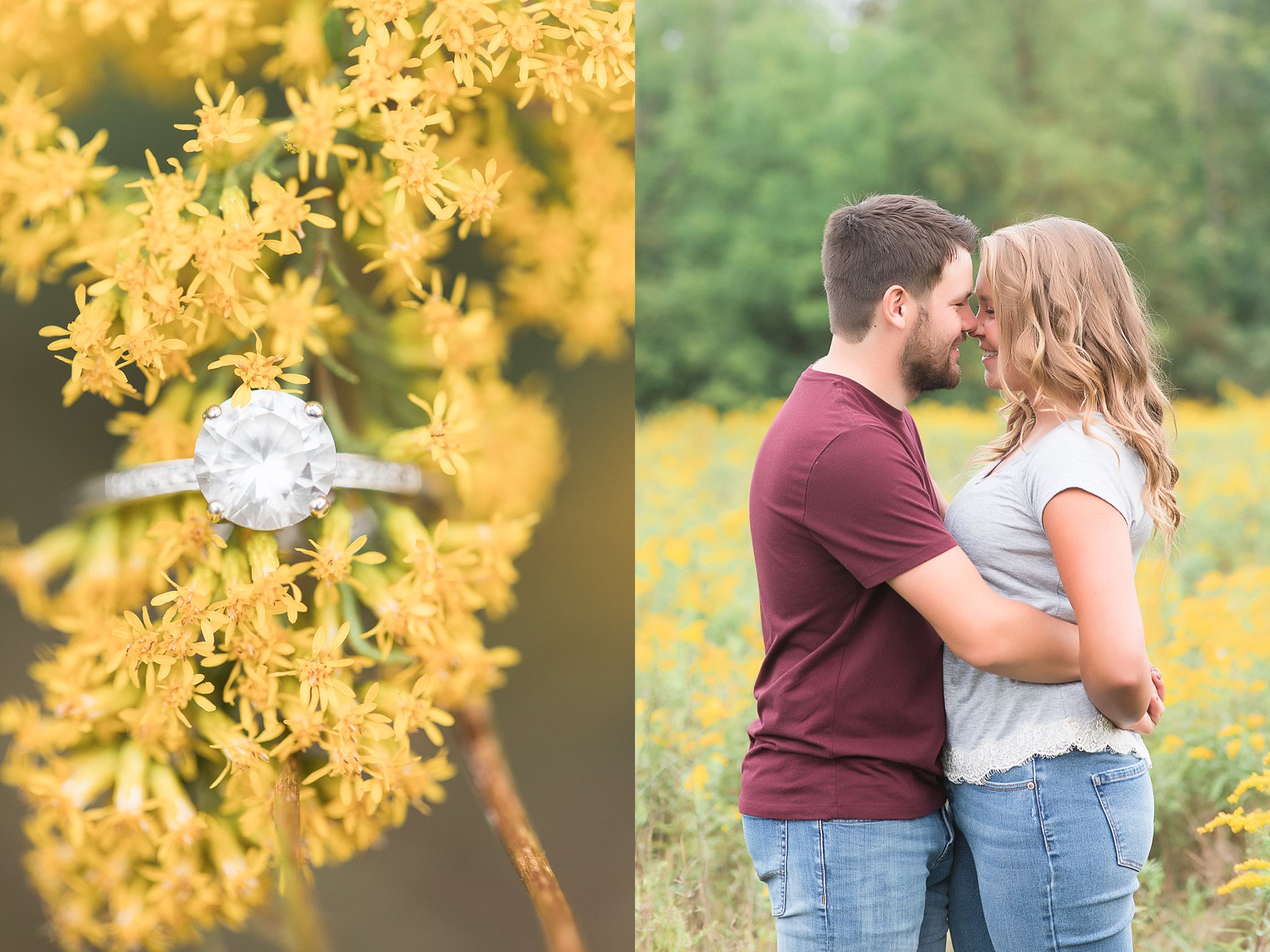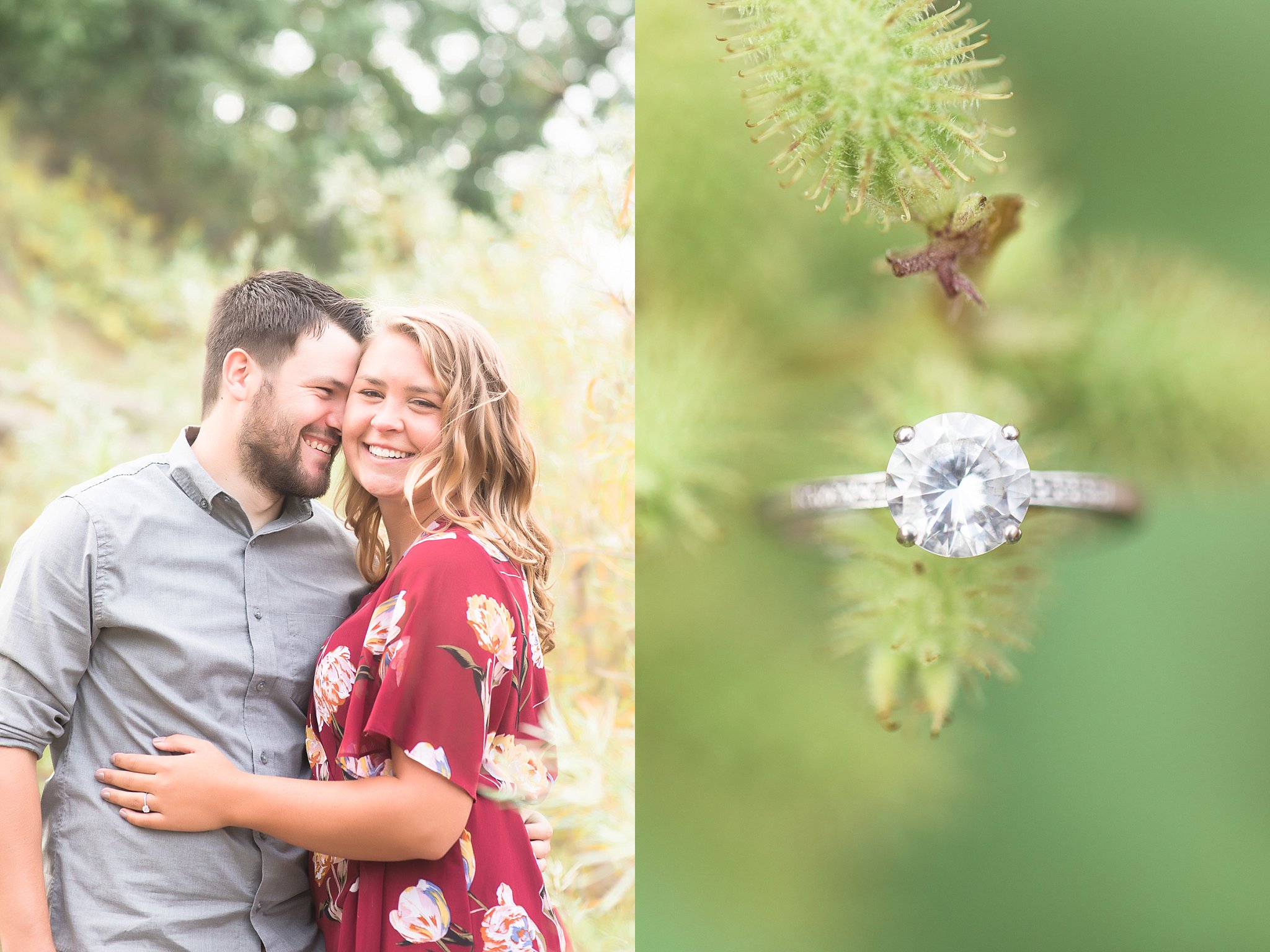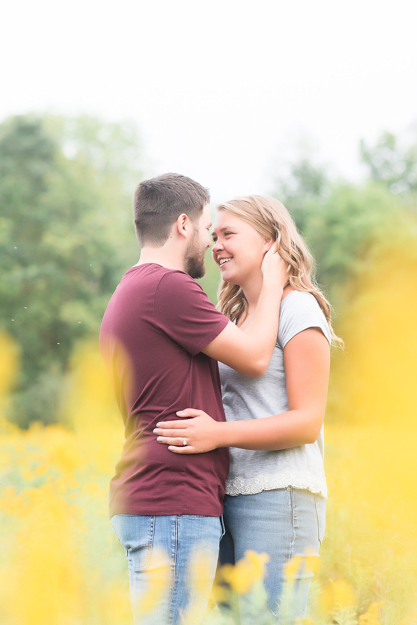 Due to COVID, although we’d be communicating since April, we didn’t actually meet until their engagement session at Salamonie Lake this September. They were even more wonderful in person! At Alyson’s suggestion we found a picnic table and began their engagement session sitting down to get to know each other a bit. I loved this! I found we were all a bit more at ease and relaxed by the time we started taking pictures. Alyson and Dustin put a lot of time and though into the location for their engagement session, wanting to be sure they chose a location that fit them well as a couple. Salamonie Lake, a location they were very familiar with was perfect! We enjoyed the variety of setting provided in one space–water, trees and fields of grasses and wildflowers.