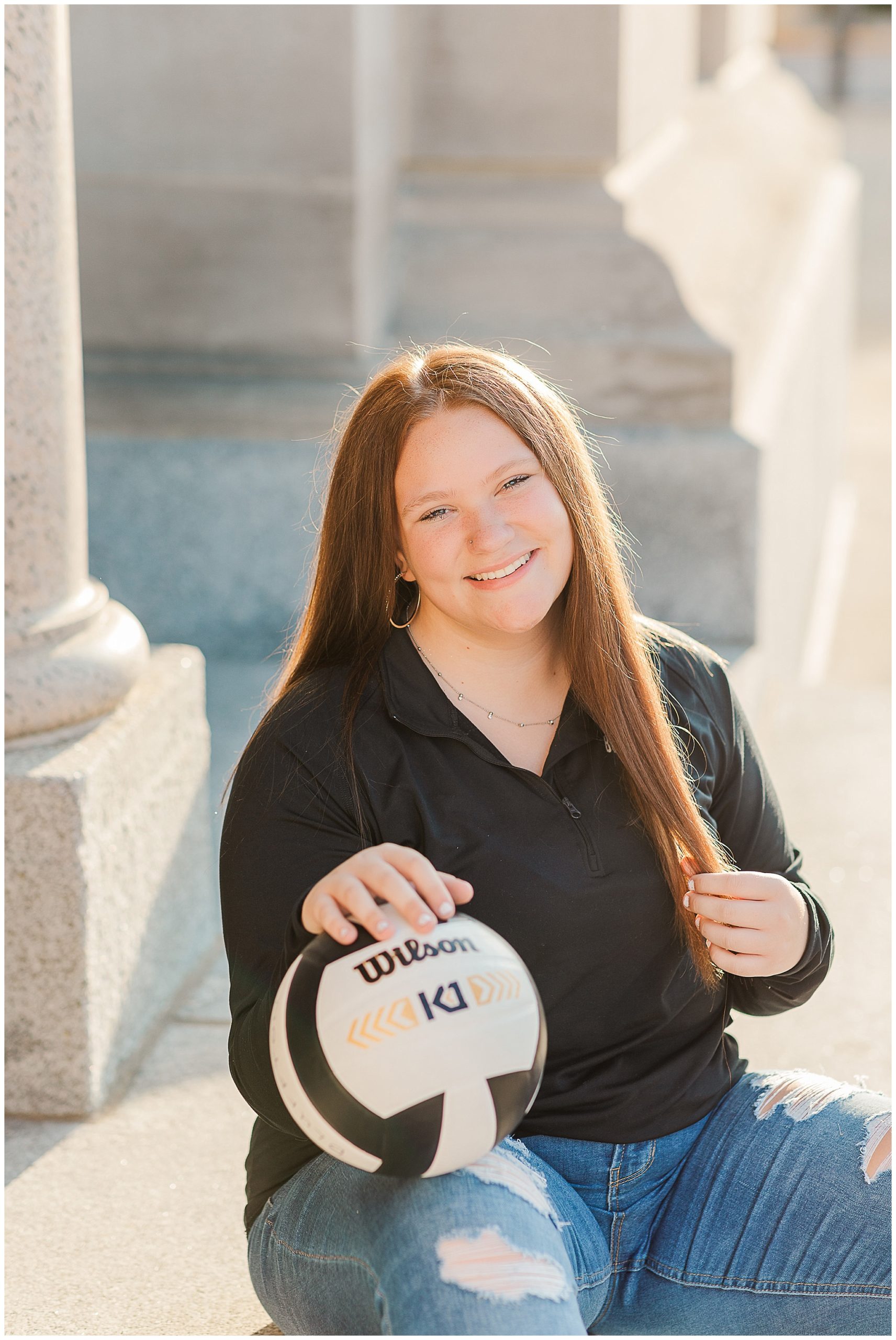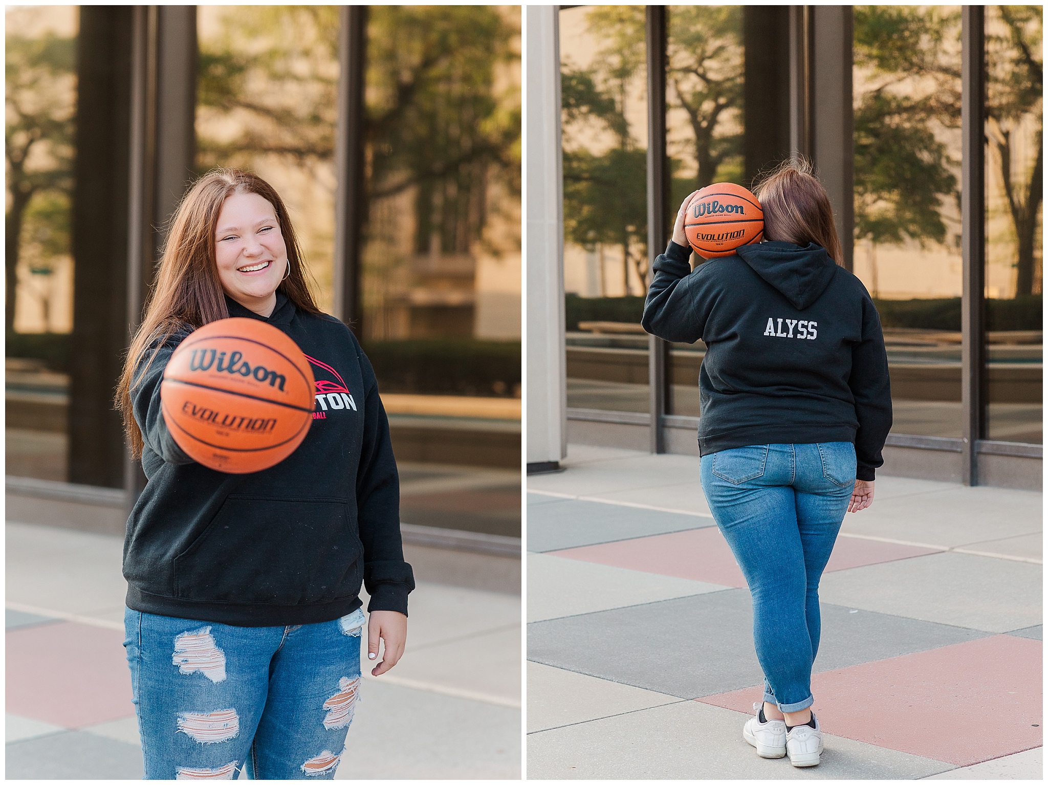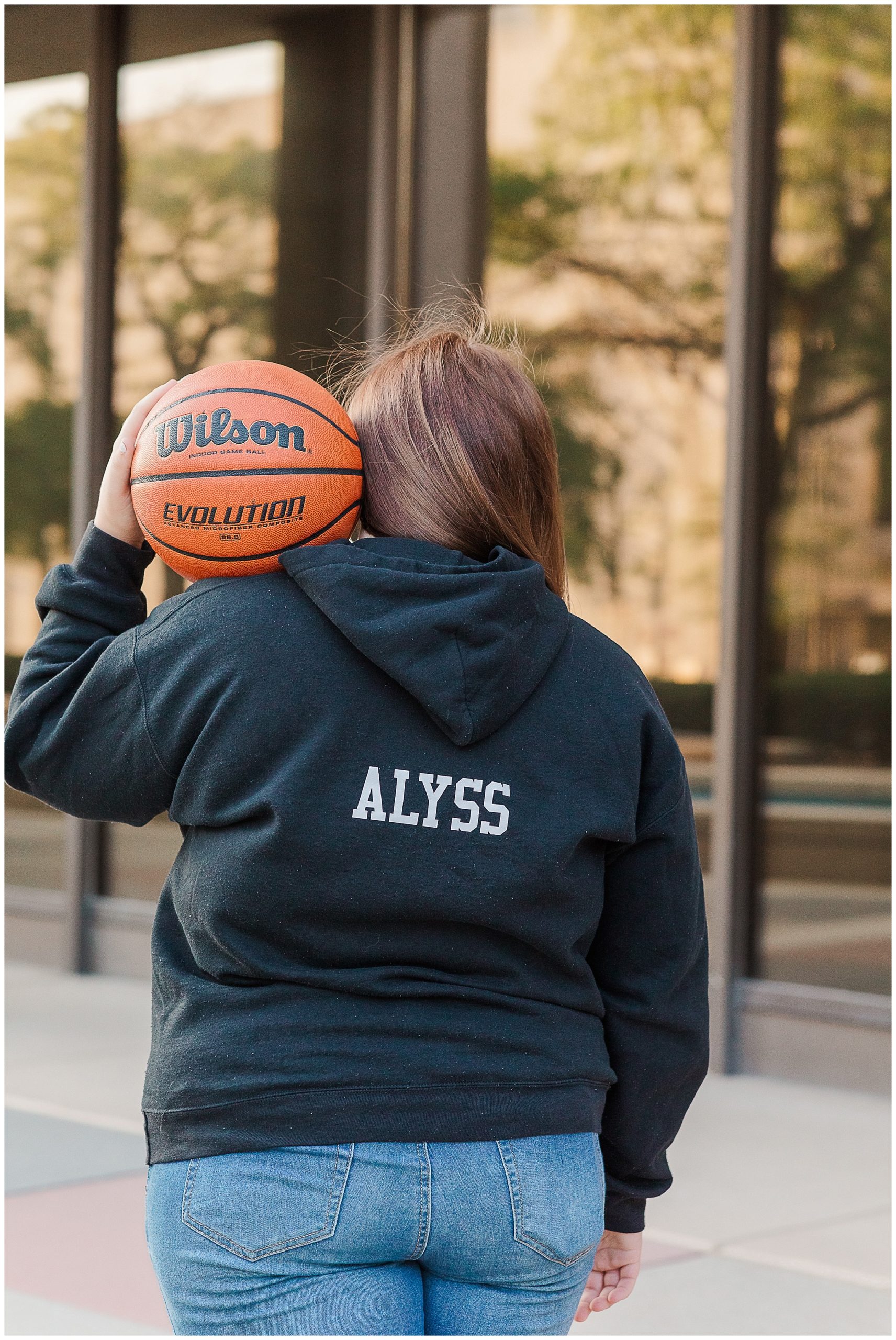 Alyssa came super prepared with all her clothes and props together in a tote.  While I carried my camera, she carried her bag every where with us.  Alyssa is used to being prepared!  She manages her high school volleyball and boys basketball teams.    She wanted to be sure to capture her team nickname on the back of her sweatshirt.  Not only does the team call her Lyss, she said it’s started to become a school-wide nickname, too.