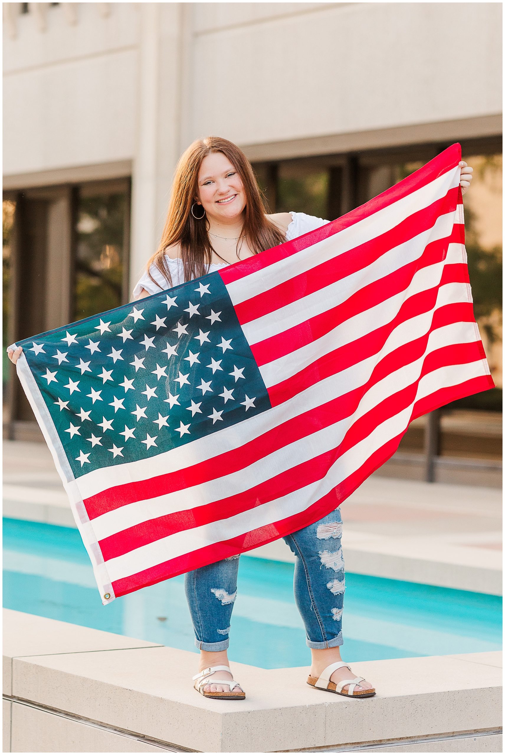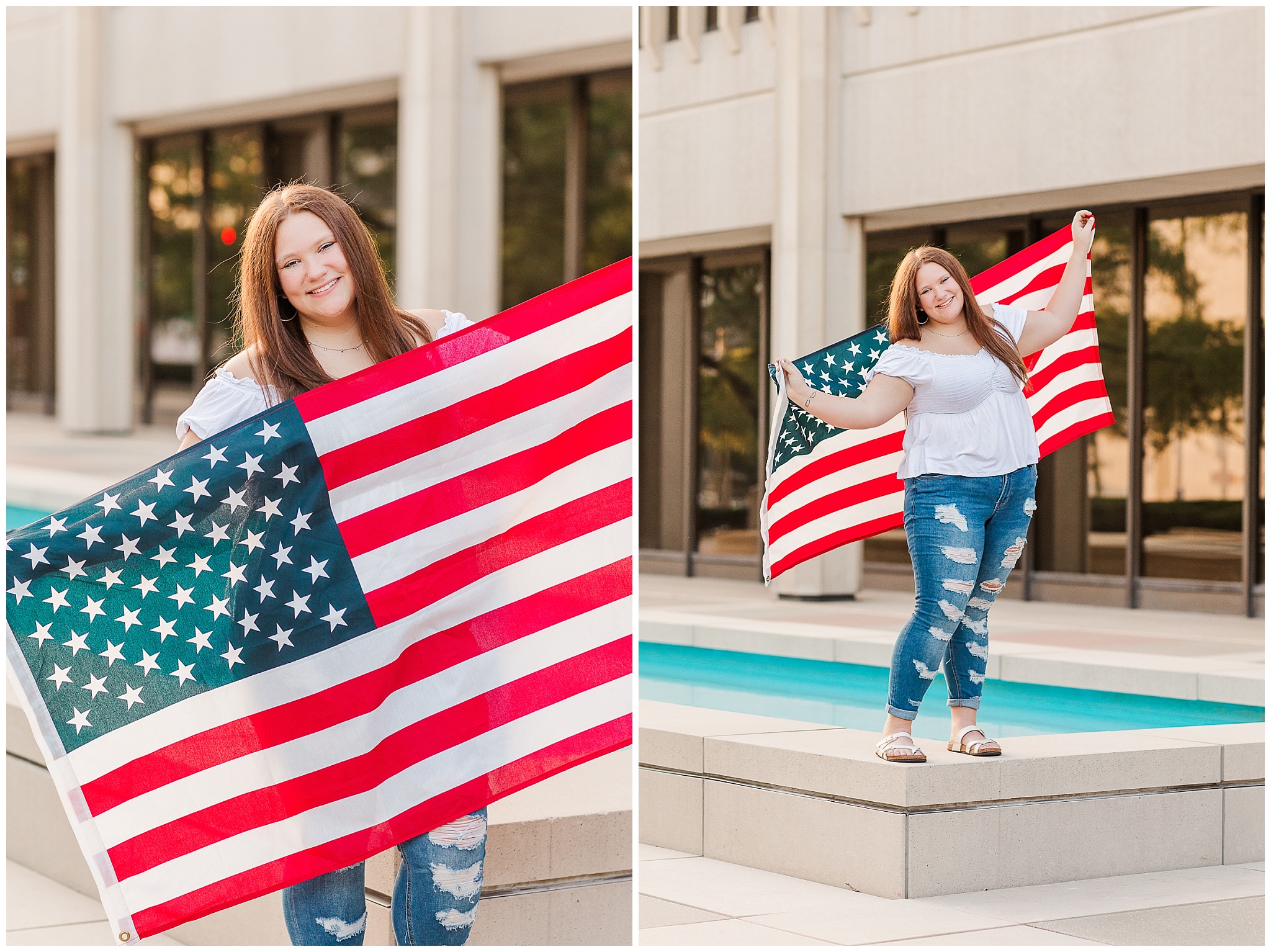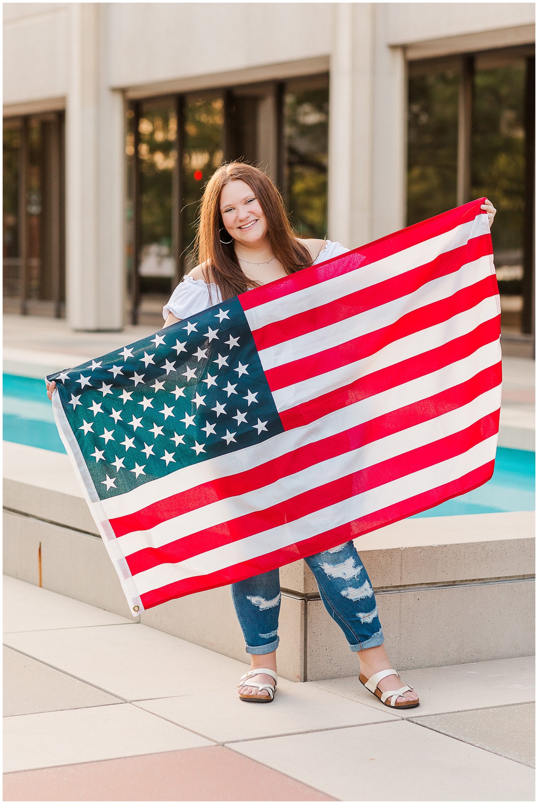Her faith and patriotism are also important to Alyssa so we had fun incorporating those into her shoot.  The courthouse plaza in downtown Fort Wayne was a great place to take some shots with her American flag!