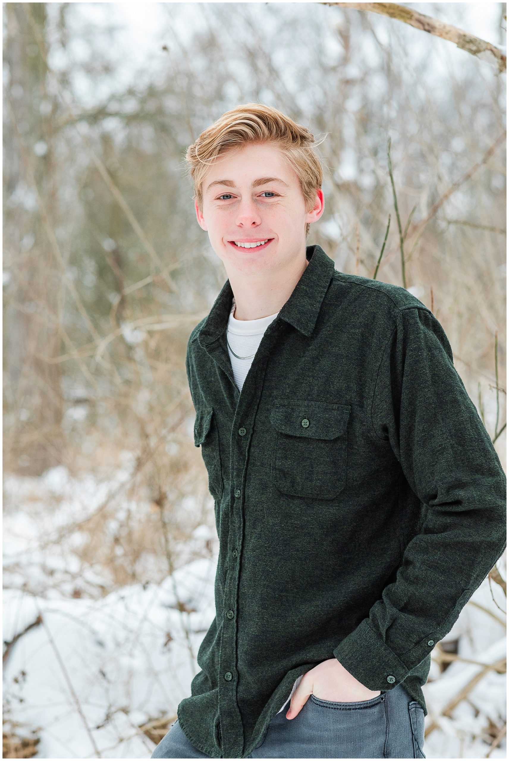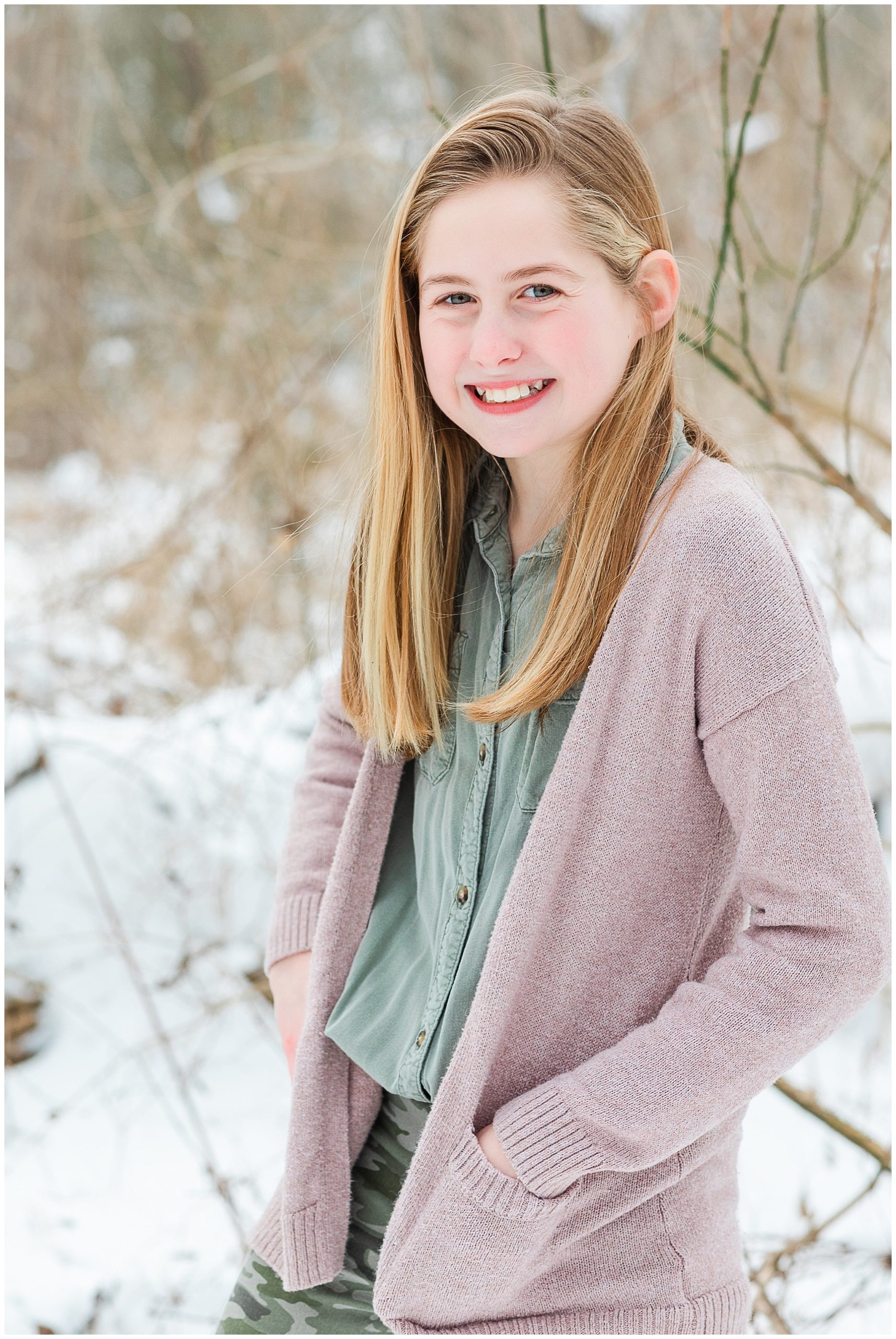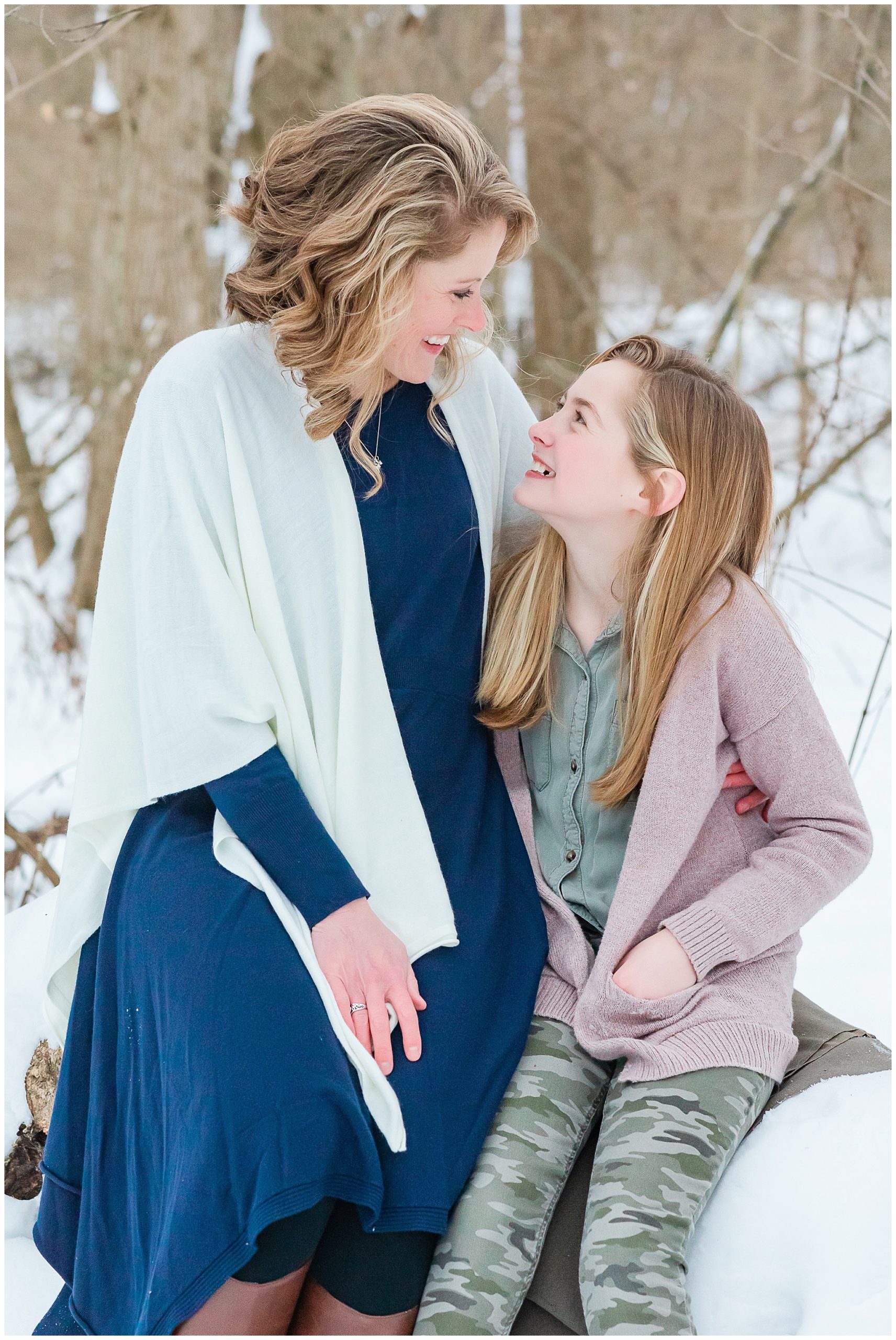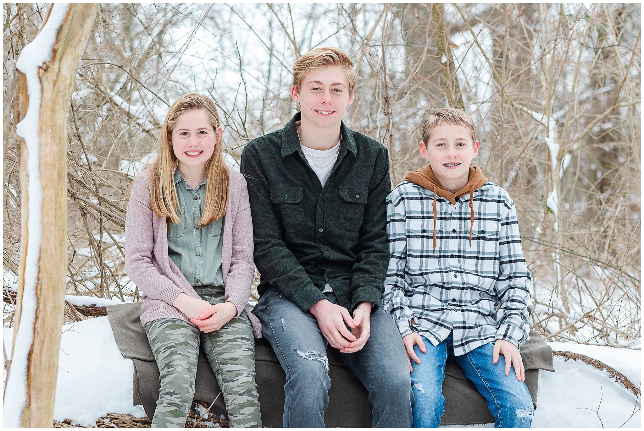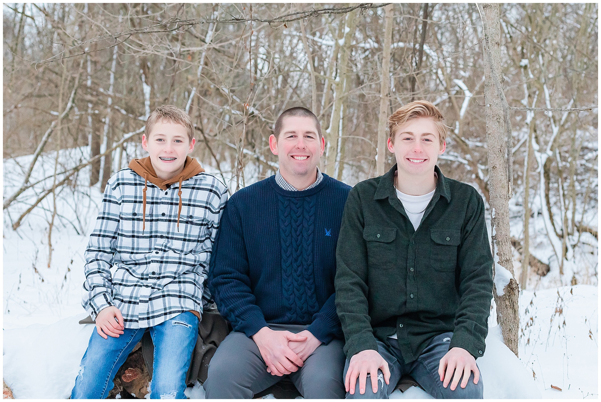 A short hike through the snow and we were in a beautiful wooded location. It was cold! So we worked quickly to capture a variety of images, putting coats back on in between. Traci, Shane and kids were fabulous! They were so fun and easy to work with and never complained about the cold! I tried hard to distract them from the cold and make them smile with lame jokes. My jokes are embarrassingly lame! I think I need a joke book!