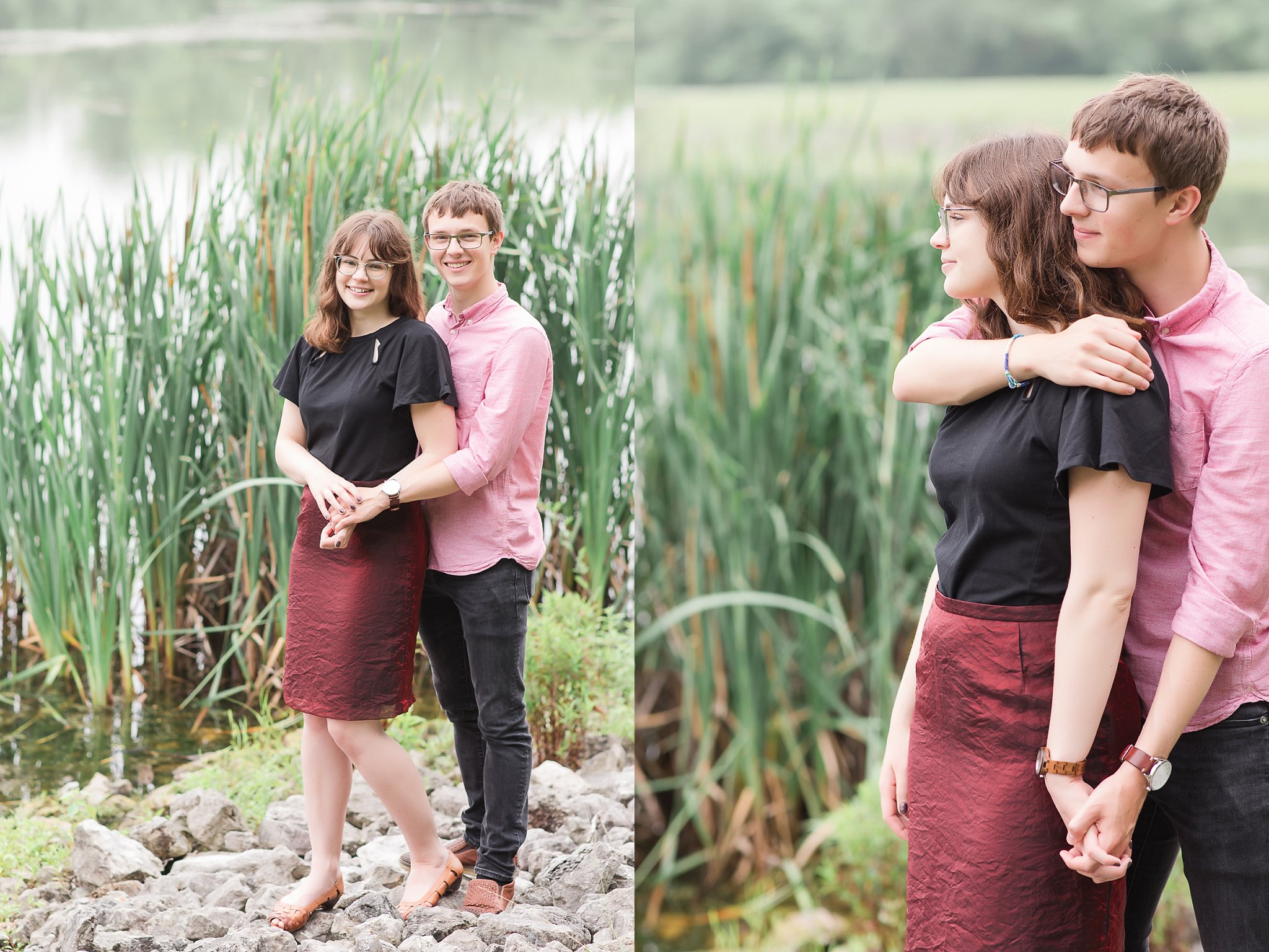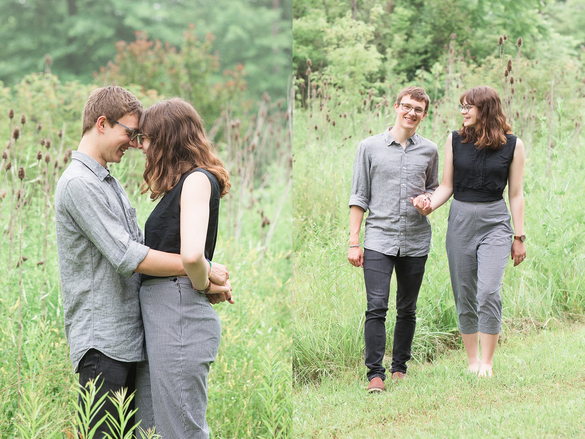 Aimee and Noah graciously met me  for a summer morning engagement session, after their scheduled session was foiled by thunderstorms.  The morning started out foggy. The sun made a welcomed appearance two-thirds of the way through our session.  You can definitely tell when the sun came out!   I was blessed to take Noah’s high school senior pictures 4 years ago.  It’s such a joy to get to know him a little more now, and met Aimee!  They are such a sweet and delightful couple.