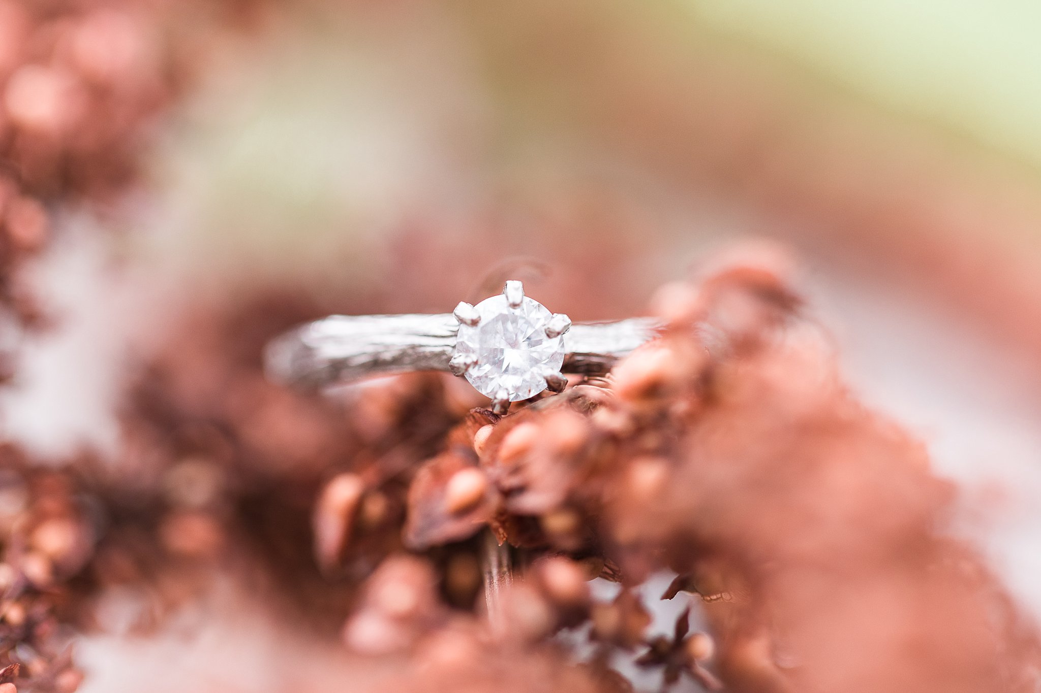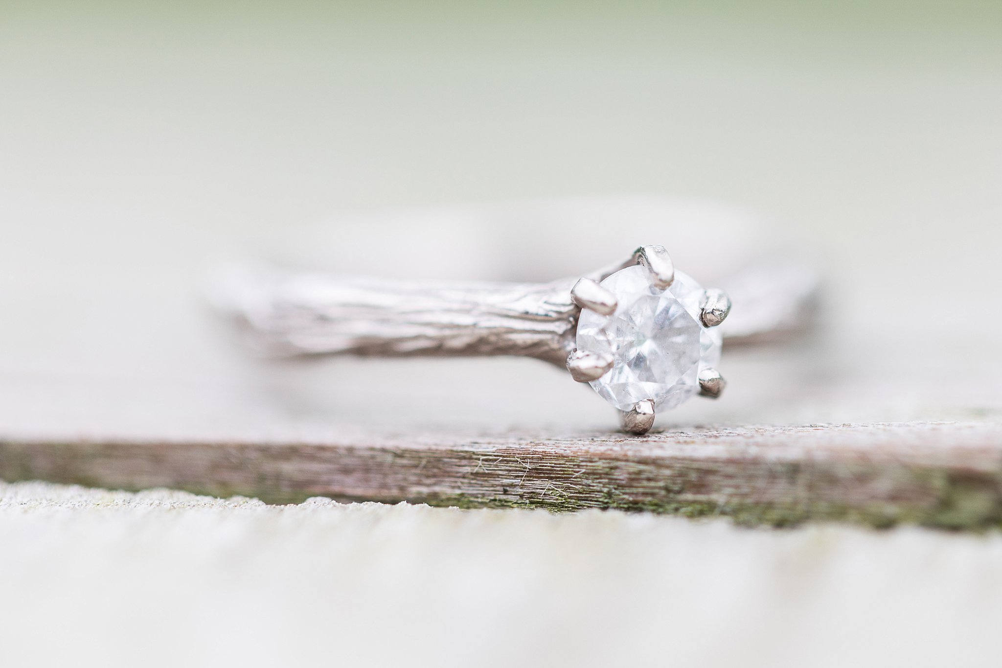 On a cold snowy weekend in January, Noah headed to Aimee’s parents’ house to celebrate her birthday with her family.   They both value the written word and notes and letters were part of their relationships.  Noah also included them as part of the proposal.  So sweet!  Aimee has a one of a kind ring made by a silversmith in Norway!  Being nature lovers was incorporated into her ring.  The sides of the band resemble the texture of tree bark.  Definitely the most unique ring I’ve ever seen!