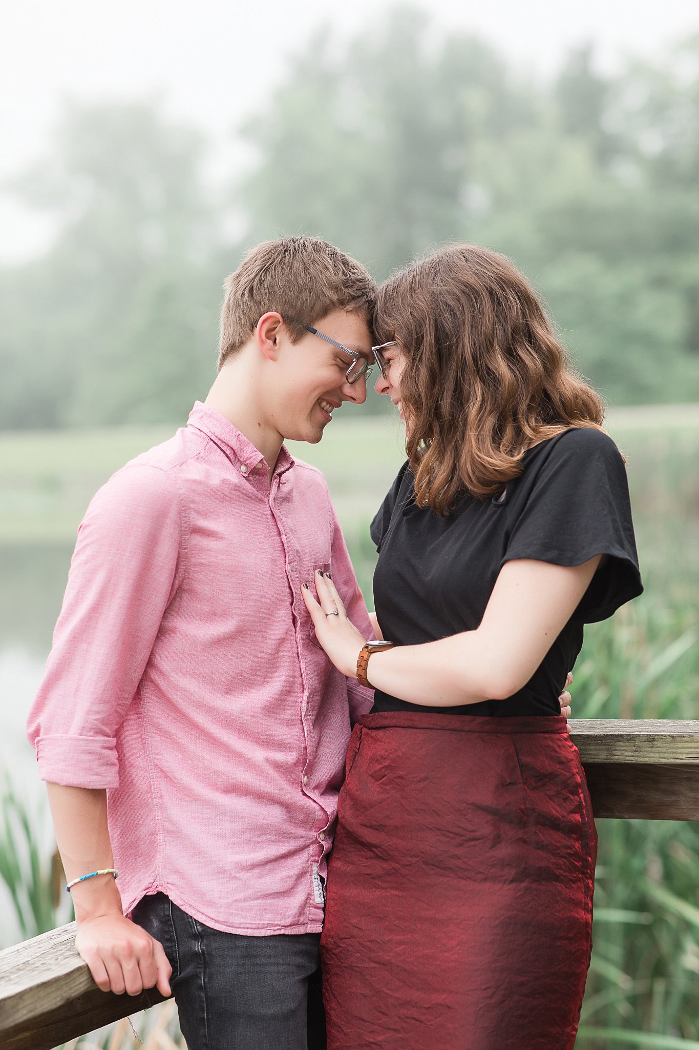 Aimee and Noah graciously met me  for a summer morning engagement session, after their scheduled session was foiled by thunderstorms.  The morning started out foggy. The sun made a welcomed appearance two-thirds of the way through our session.  You can definitely tell when the sun came out!   I was blessed to take Noah’s high school senior pictures 4 years ago.  It’s such a joy to get to know him a little more now, and met Aimee!  They are such a sweet and delightful couple.