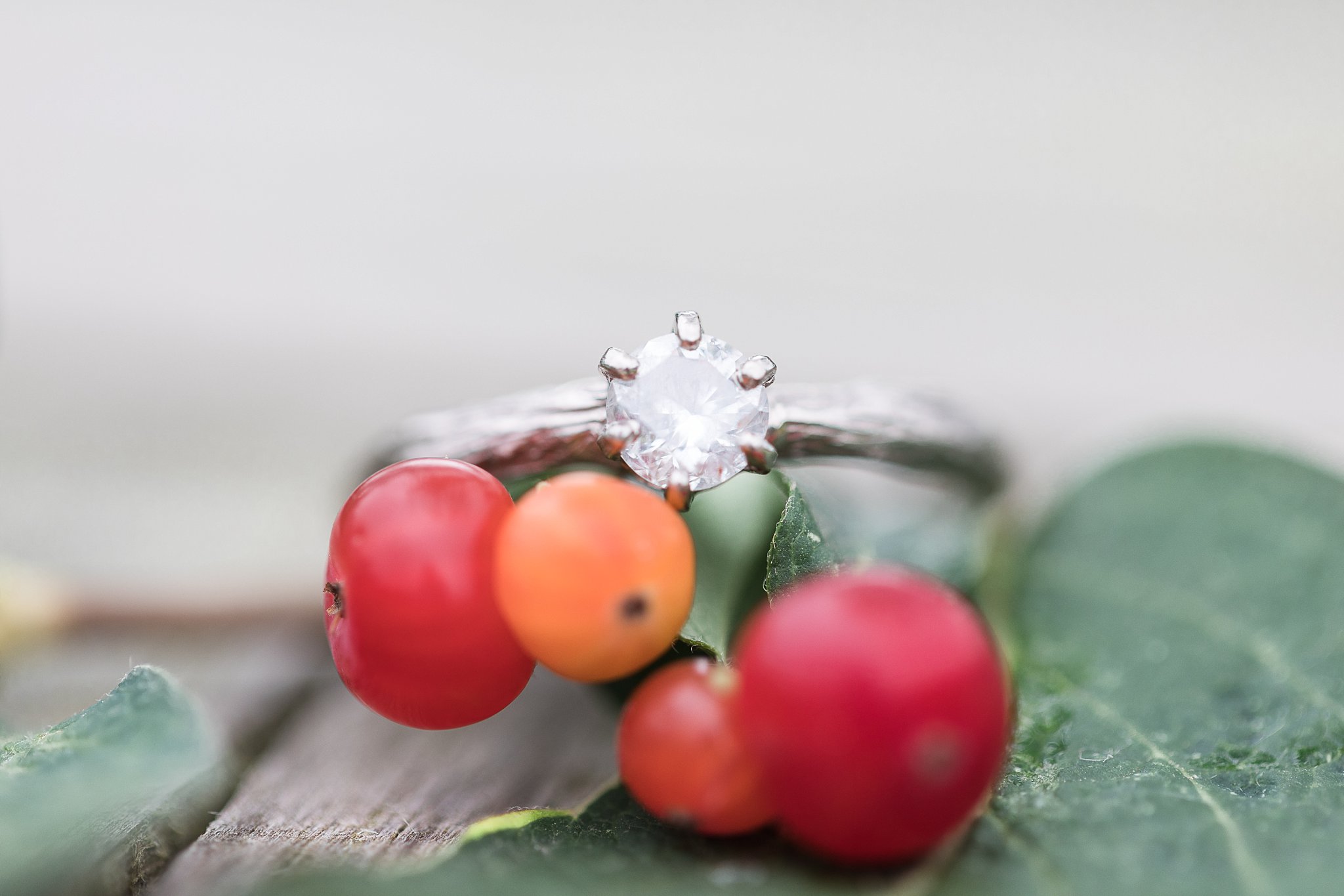 On a cold snowy weekend in January, Noah headed to Aimee’s parents’ house to celebrate her birthday with her family.   They both value the written word and notes and letters were part of their relationships.  Noah also included them as part of the proposal.  So sweet!  Aimee has a one of a kind ring made by a silversmith in Norway!  Being nature lovers was incorporated into her ring.  The sides of the band resemble the texture of tree bark.  Definitely the most unique ring I’ve ever seen!