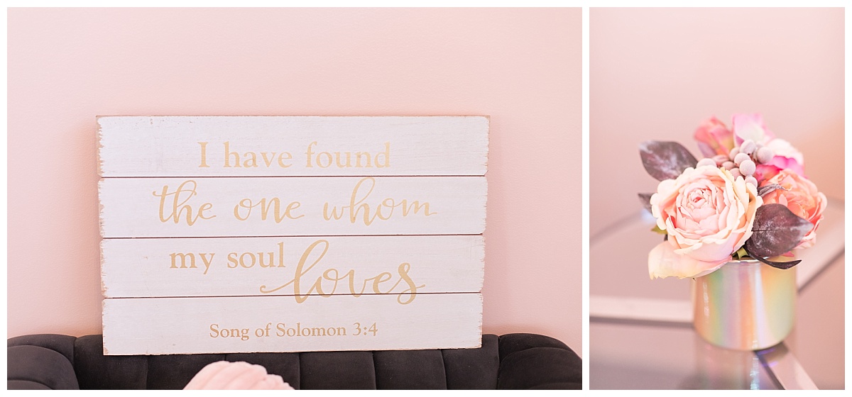 First let’s talk about the bridal suite! The Blue Teal Wakarusa wedding venue has a bridal suite that is every bride’s dream! It has a completely separate building for the ladies to prep for the big day in. The outside is adorned with flower boxes and a welcoming porch. Inside, enjoy a wall of mirrors , make-up lights, comfy chairs and even a small fridge. This is the ultimate getting ready space! And it’s even my favorite color, pale pink! As a photographer I loved the window light in the bridal suite for detail shots.