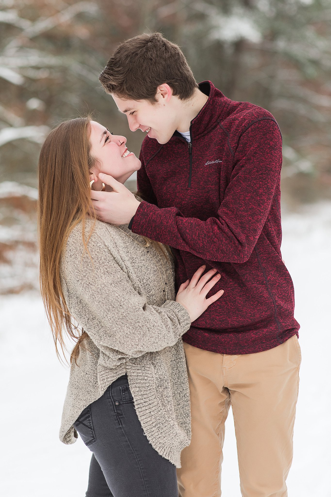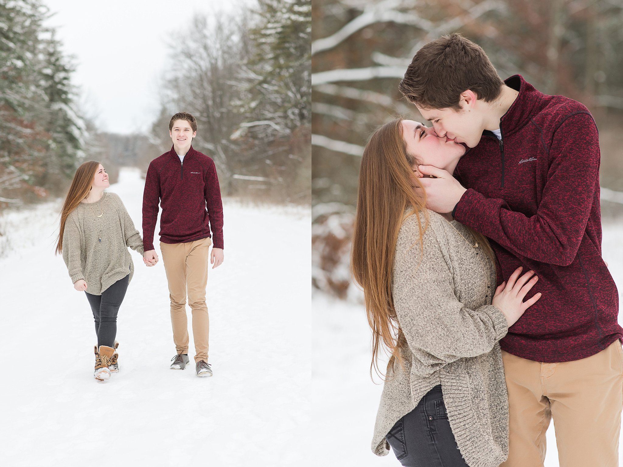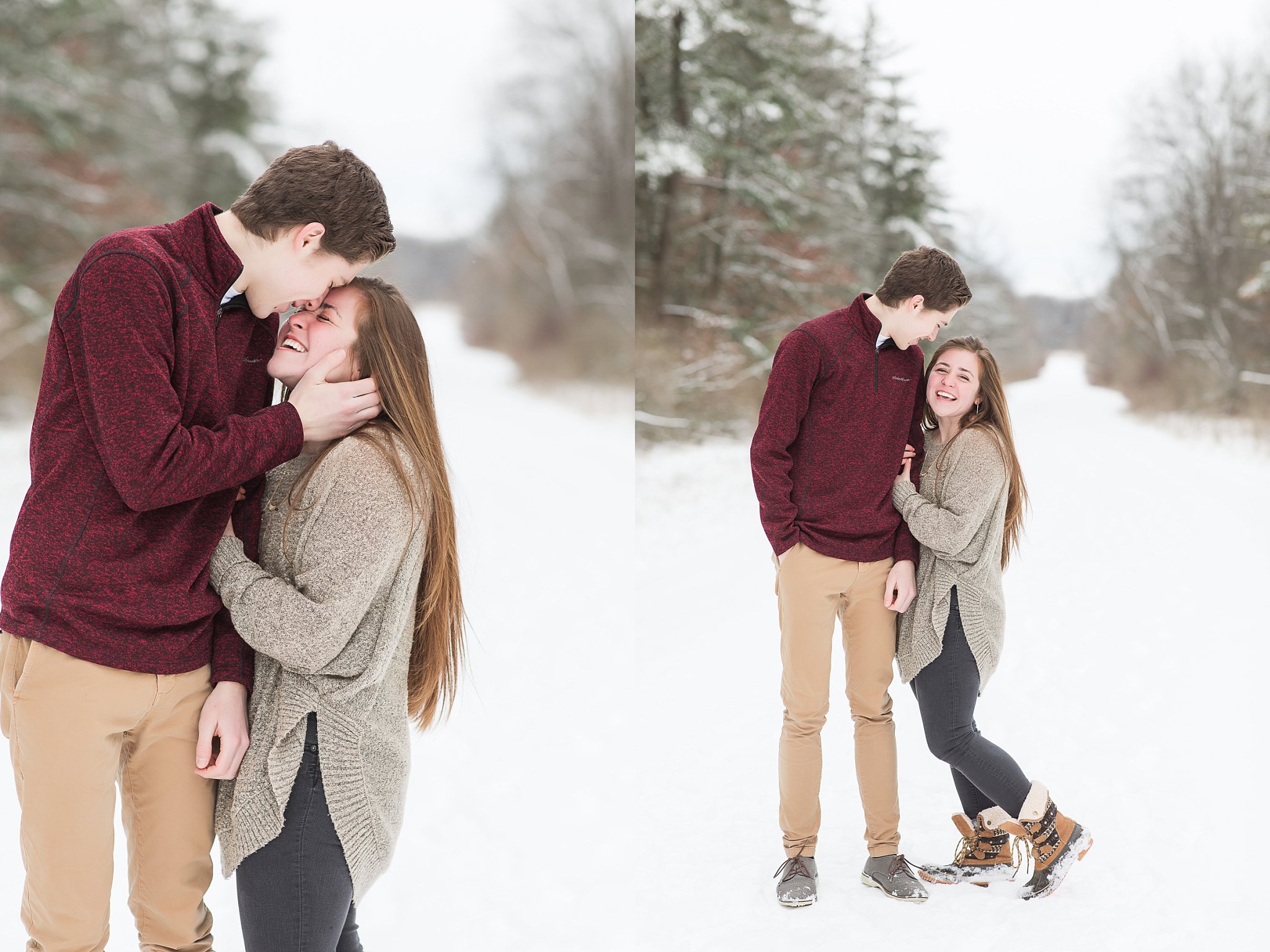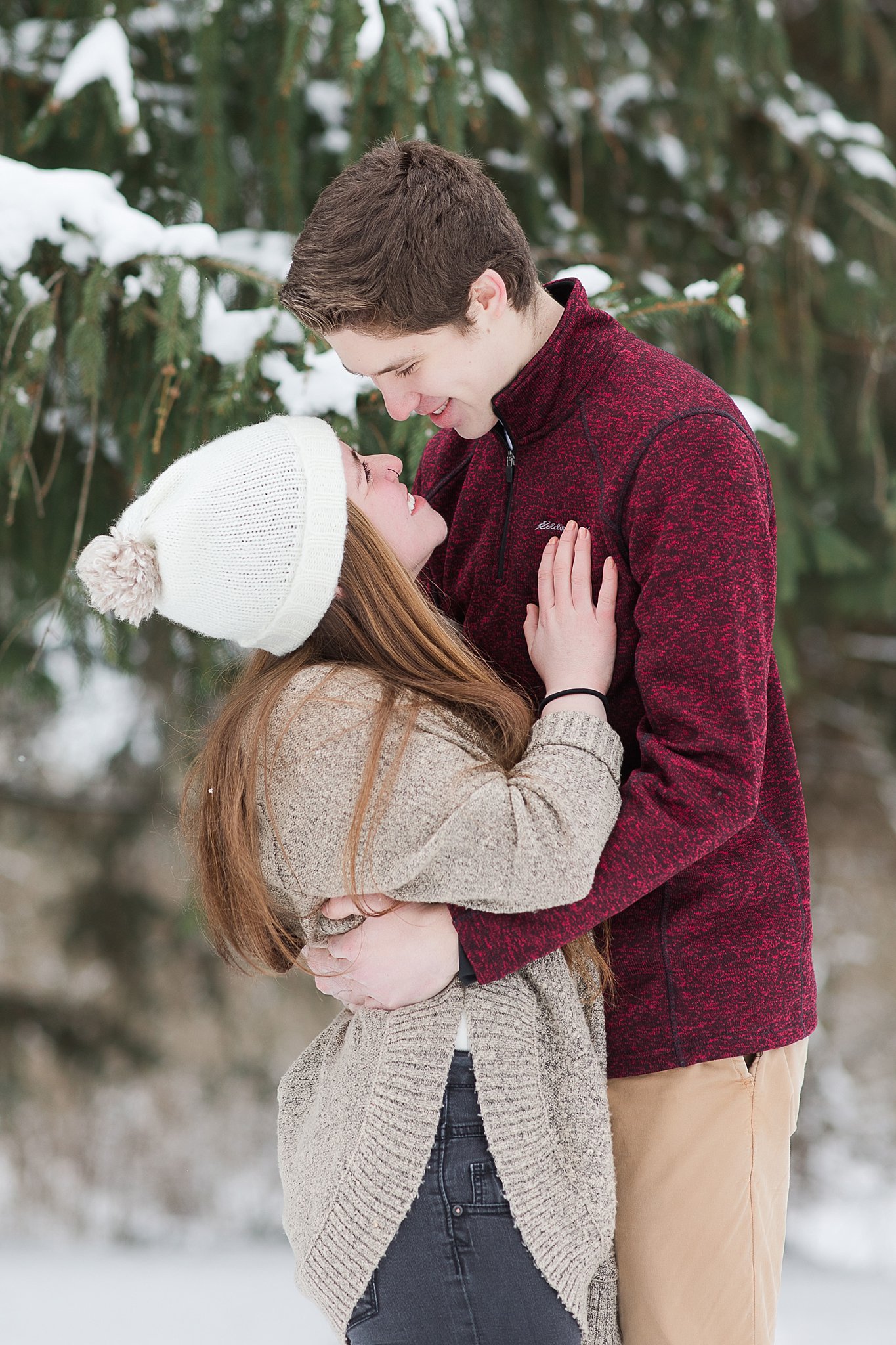 The first email I received from Alex, she bubbled over with enthusiasm! Geoff’s family moved into the area their junior year of high school. Alex and Geoff initially met at church, but also had a class together at their high school. They started dating the winter of that year, and have been together ever since. They clearly enjoy each other and have so much fun together! It was a delight to watch them laugh and giggle their way through their engagement session! This spring they will graduate from college with degrees in nursing and mechanical engineering. Then at the beginning of June, they’ll be married!